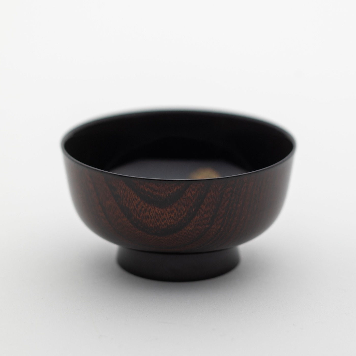 この杯の木地にはケヤキを使っていて、木目がきれいなので、外側を木地溜めという仕上げにしました。木地に透き漆を塗っていて、漆の奥の方に木目が見えるという技法です。