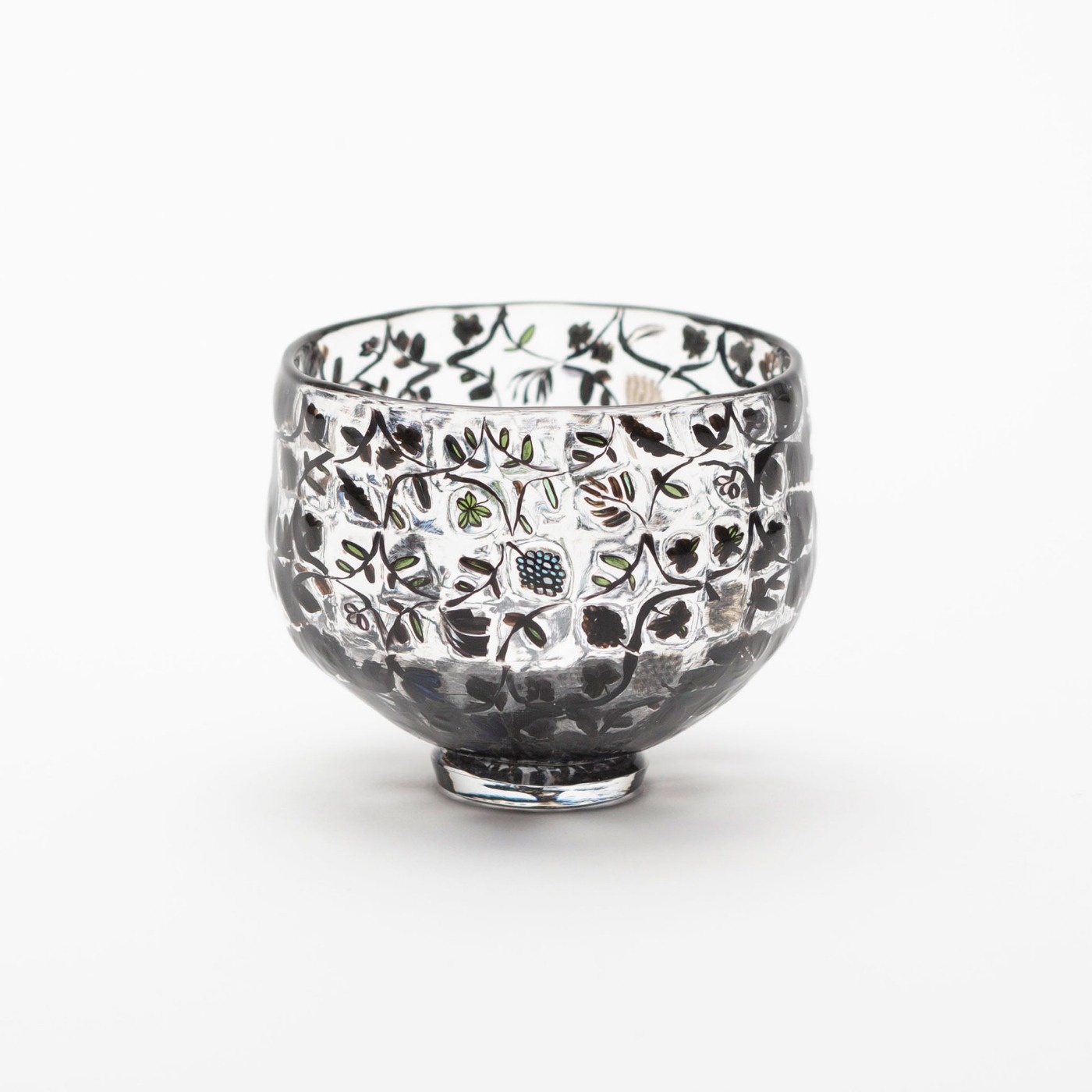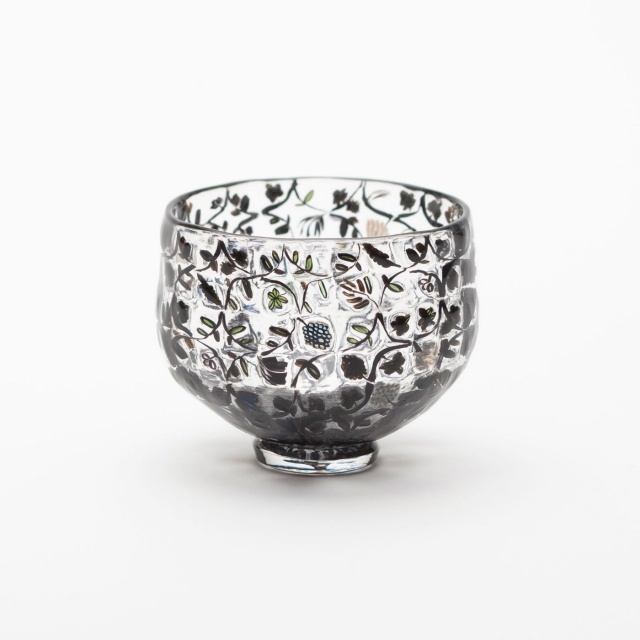「ある日の夜、犬の散歩から戻った時に窓辺に垂れ下がった蔓植物が、月光で影を落としていました。それが美しかったのでそのままモチーフにしました」と江波さん。よく見ると蔓草の影の中に、夜空のような青色の花びらも…。