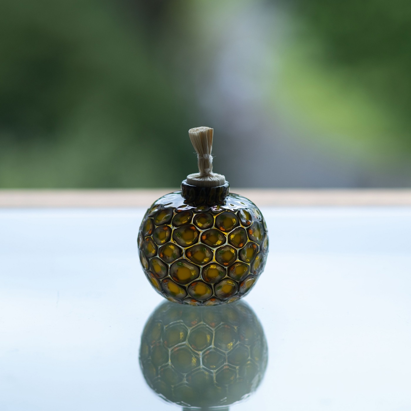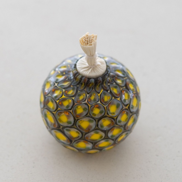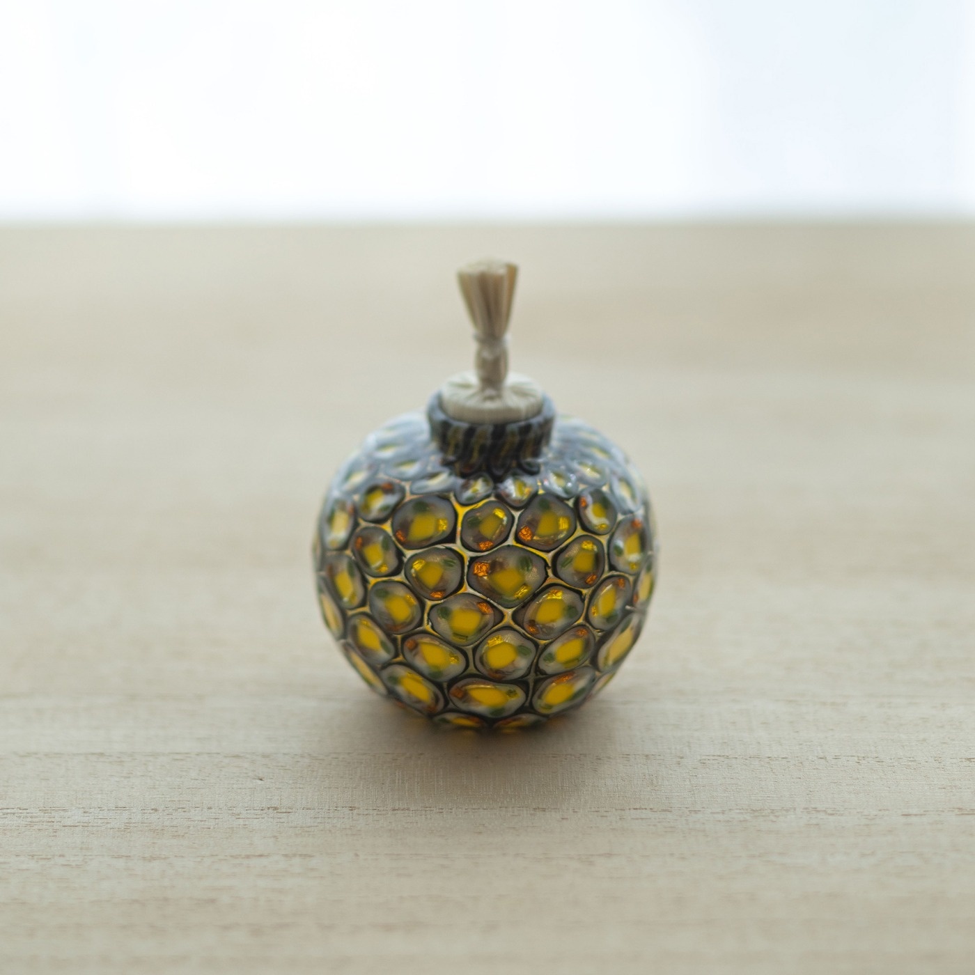 遠目にはパイナップルのようにも見えますが、海苔巻きのムリーニ(モザイクガラス)が連なった楽しい振出です。