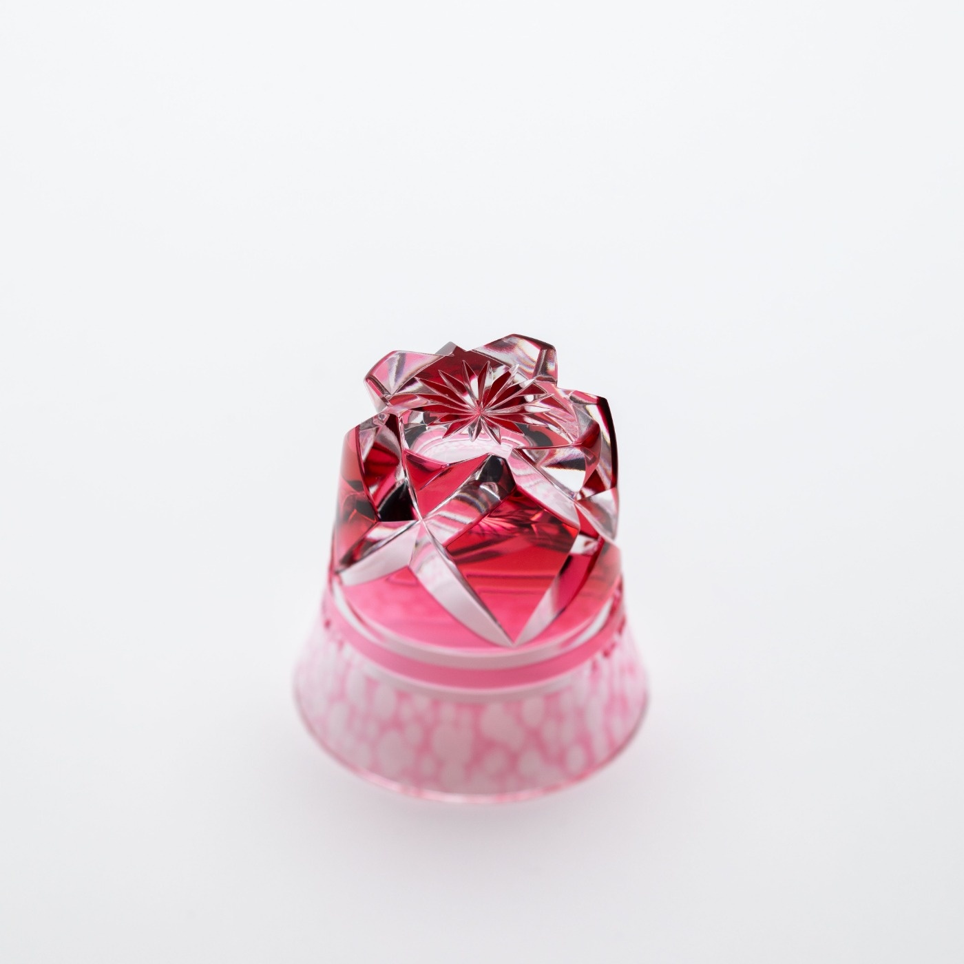 底には菊花(花びら16枚)が施されていて、真上からのぞき込むと、菊花を花芯に白い花やさらに外側に赤い花びらも重なって見えてきます。