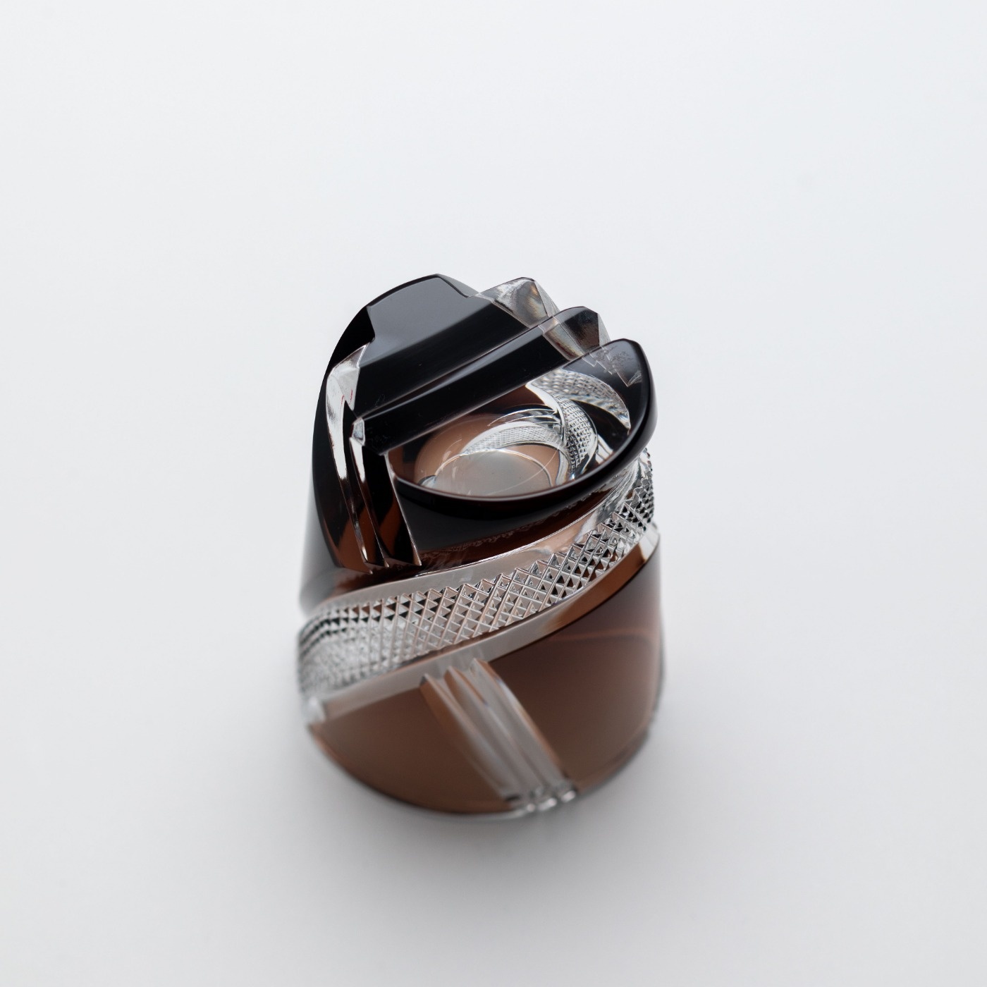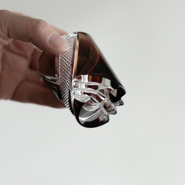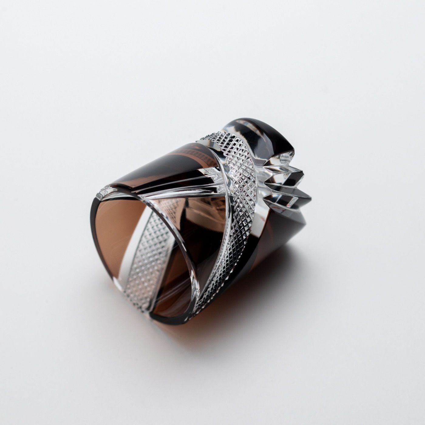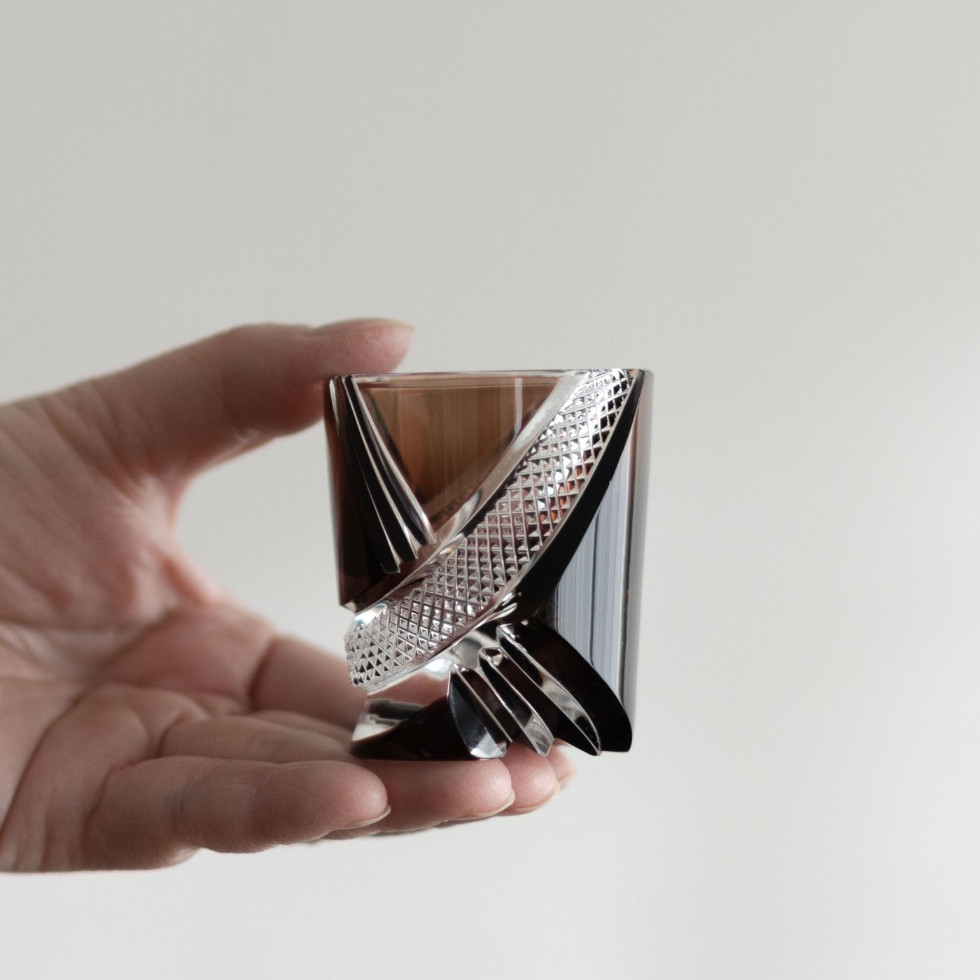 深く切り込んだモダンな流線形のカットと、帯状の魚子(ななこ)の細かなカットがクロスしていて、そのコントラストも特徴的です。