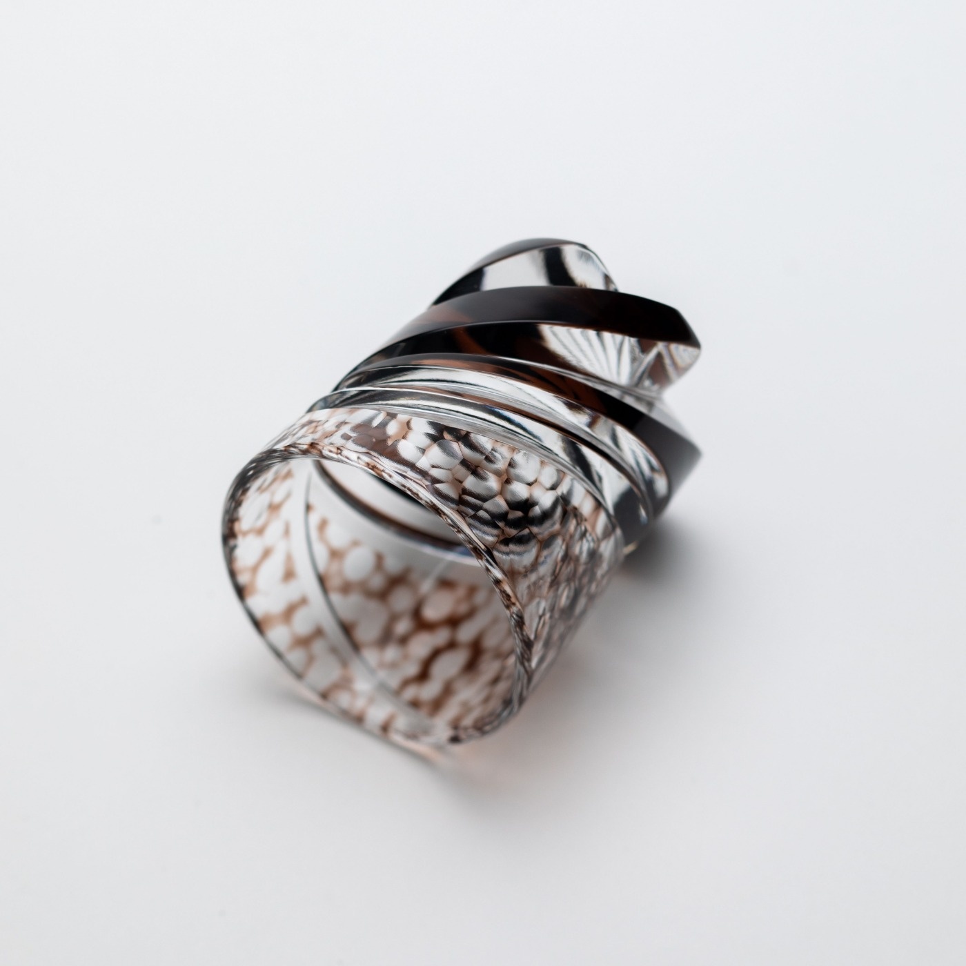 深く切り込んだ流れるような流線形のカットと、上部のボカシのカットの強弱が特徴的です。