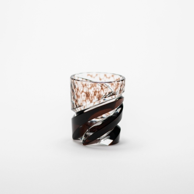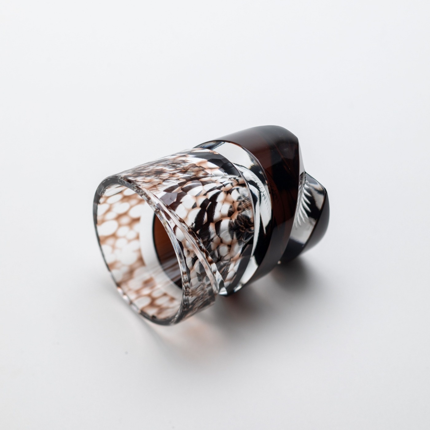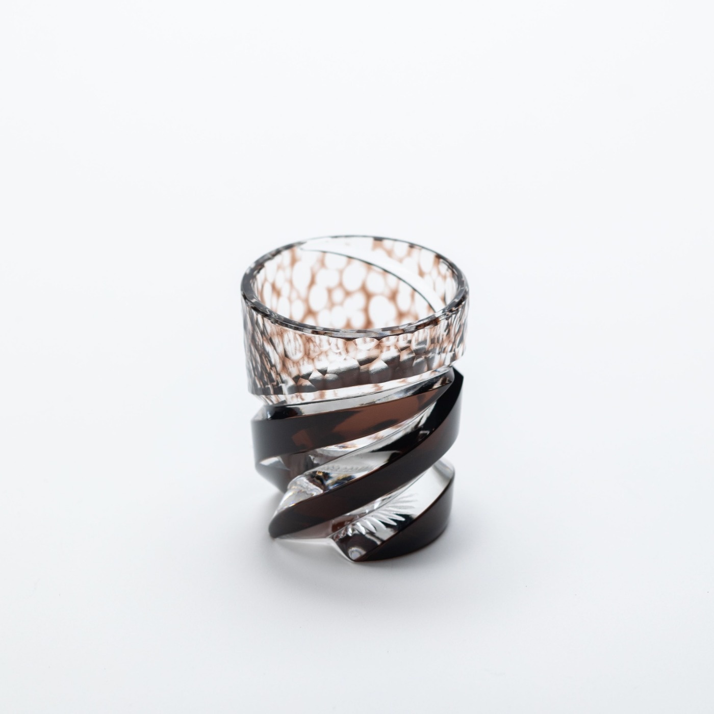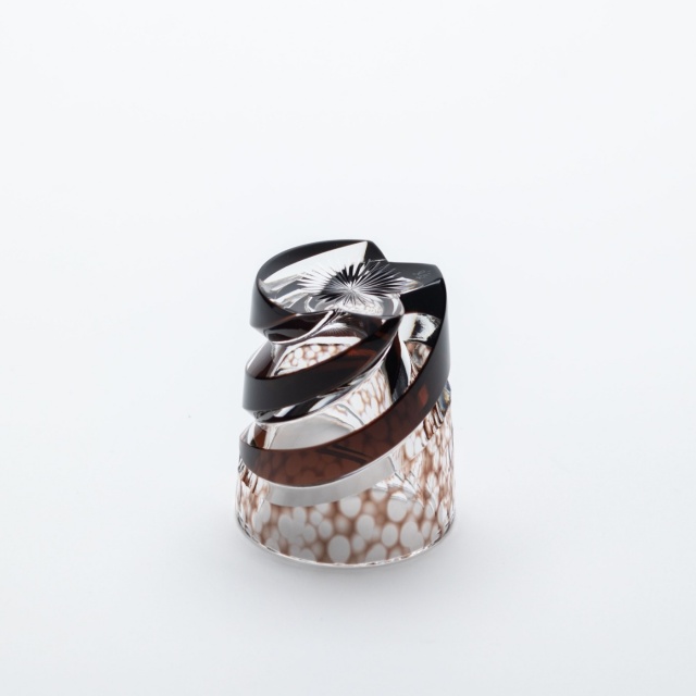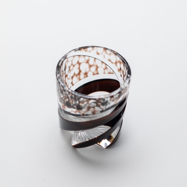 深く切り込んだ流れるような流線形のカットと、上部のボカシのカットの強弱が特徴的です。