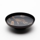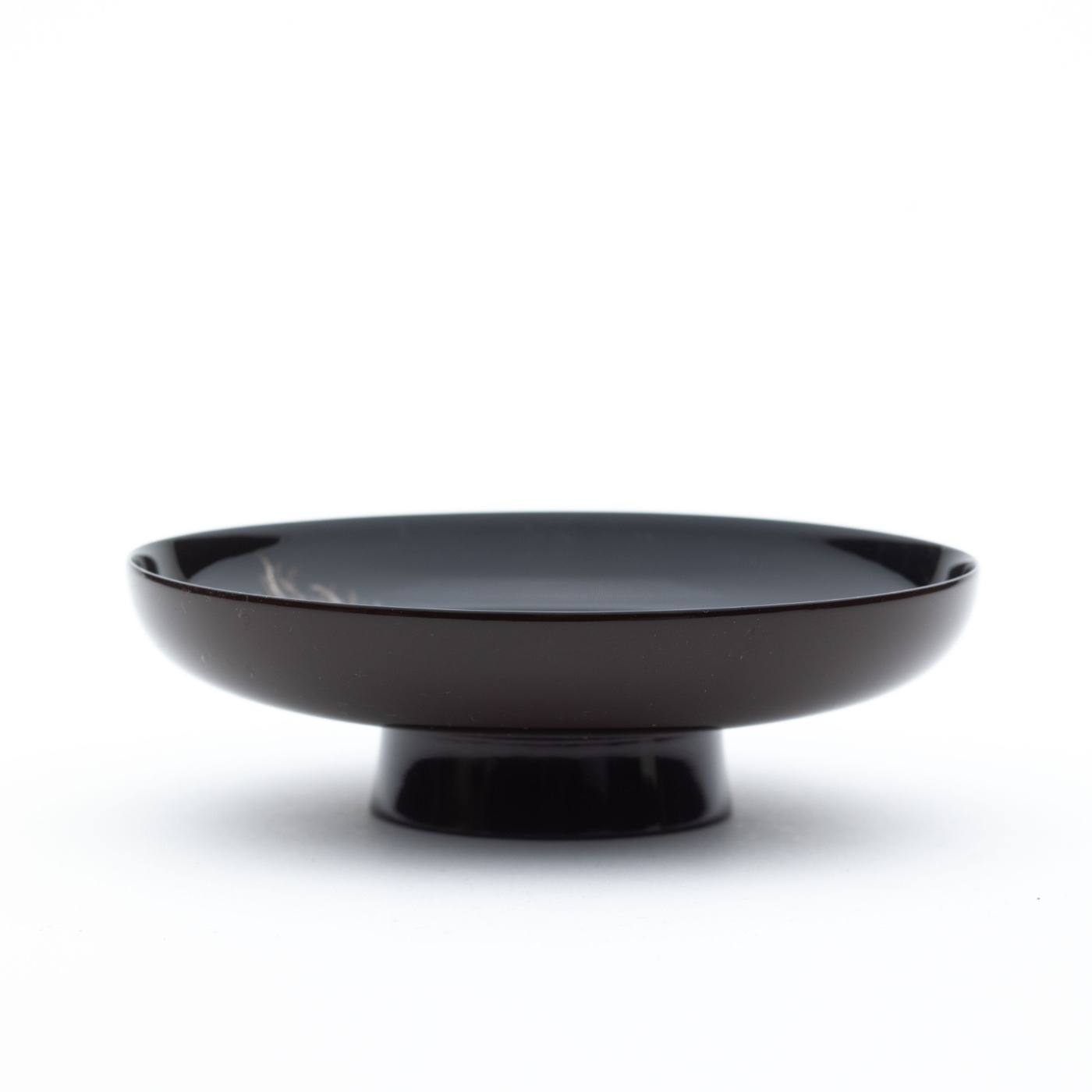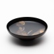 筆の毛先1本で極限まで細い線を漆で描き、そこに金粉を蒔き、さらに上から漆を塗り、その漆を繊細に研ぎ出した研出(とぎだし)蒔絵。器も蒔絵の繊細さにふさわしい、薄づくりの木地で、塗りも薄く仕上げています。杯の外側は漆の潤(焦茶色)です。