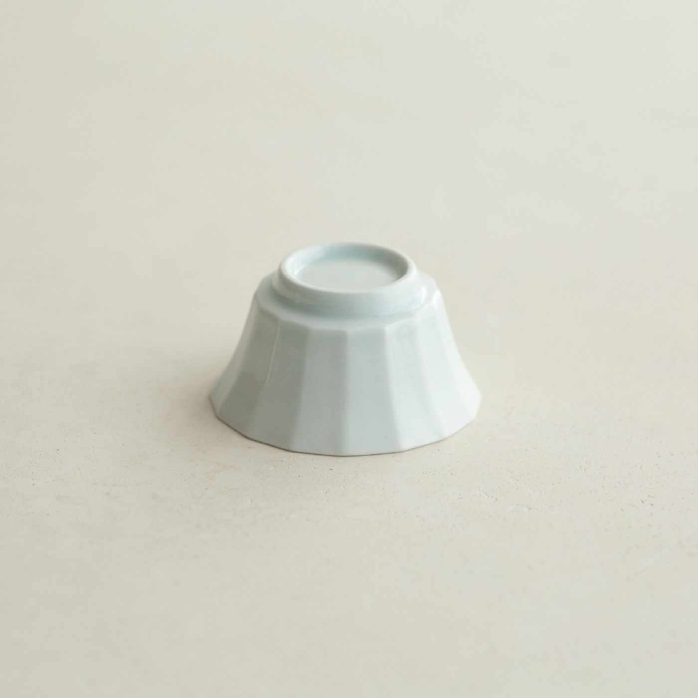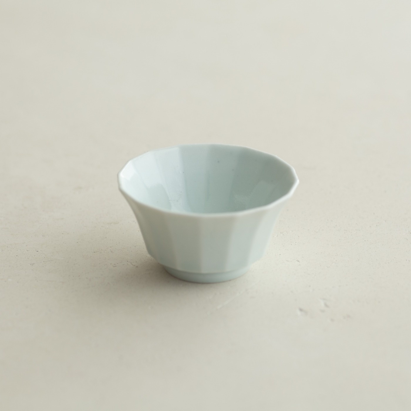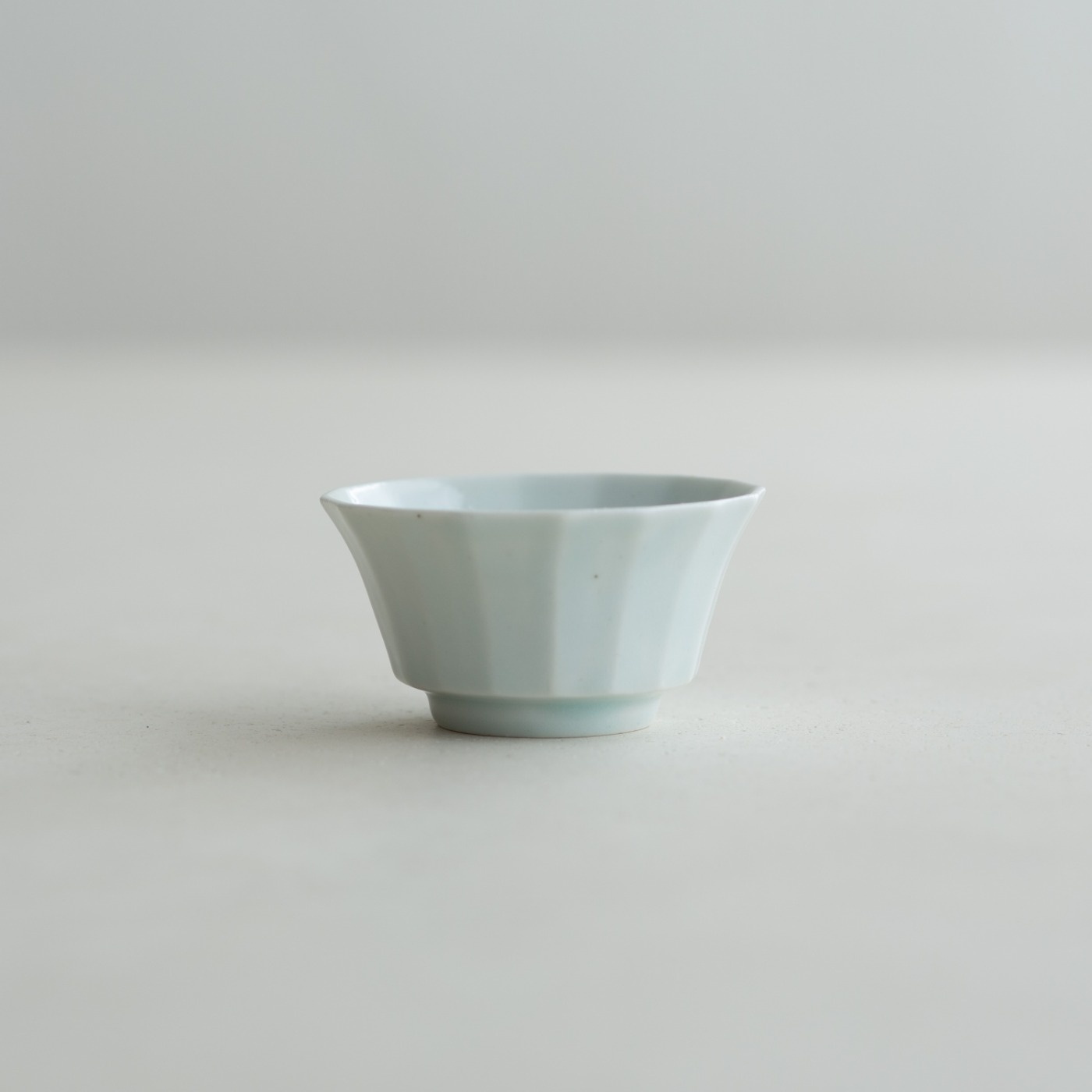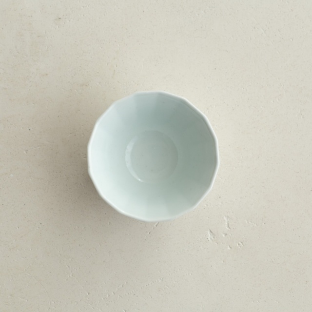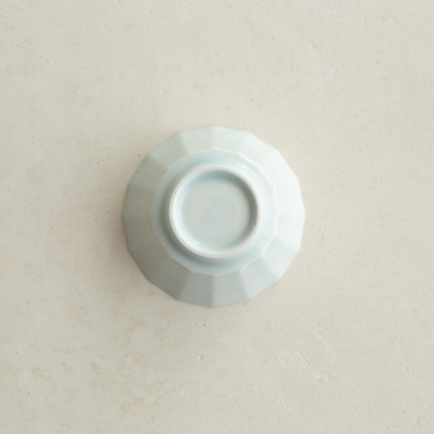 型打成形の後、面を削り出しています。古九谷の時代のつくり方を参考にしたそうです。釉の溜まったところはほんのり色付き、面取の凜としたラインとの響き合いがきれいです。