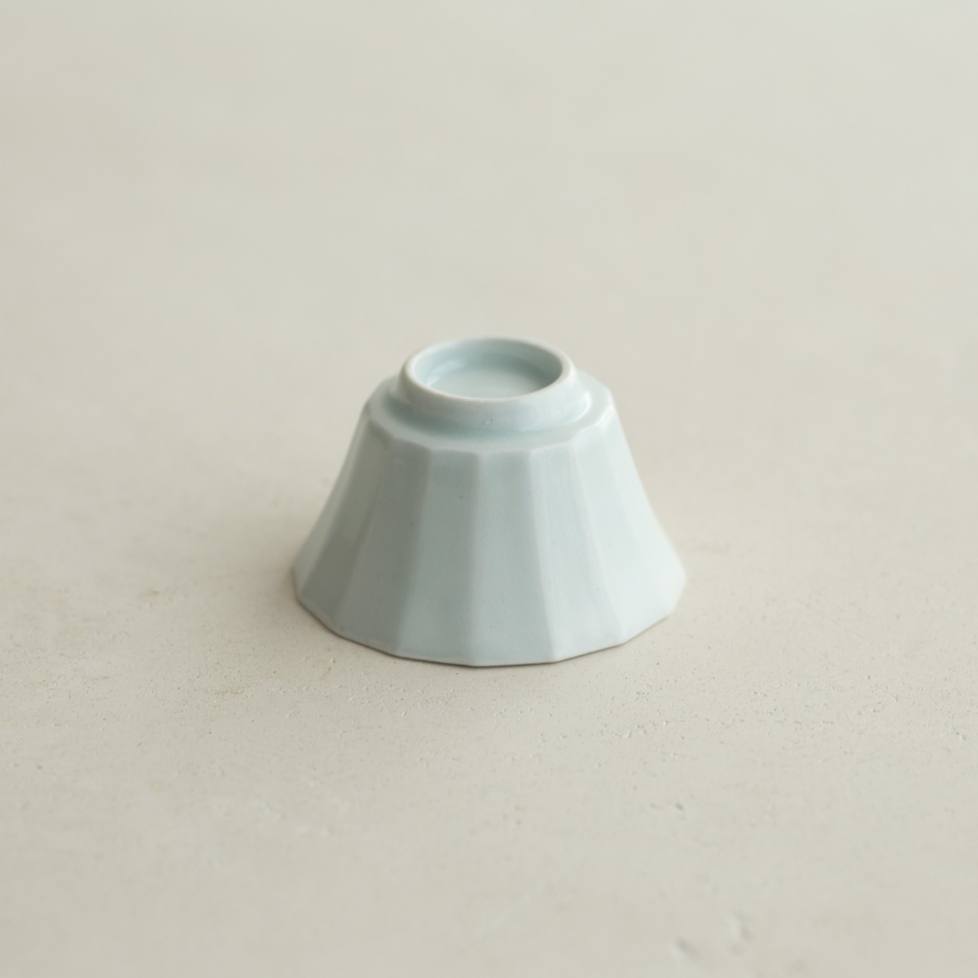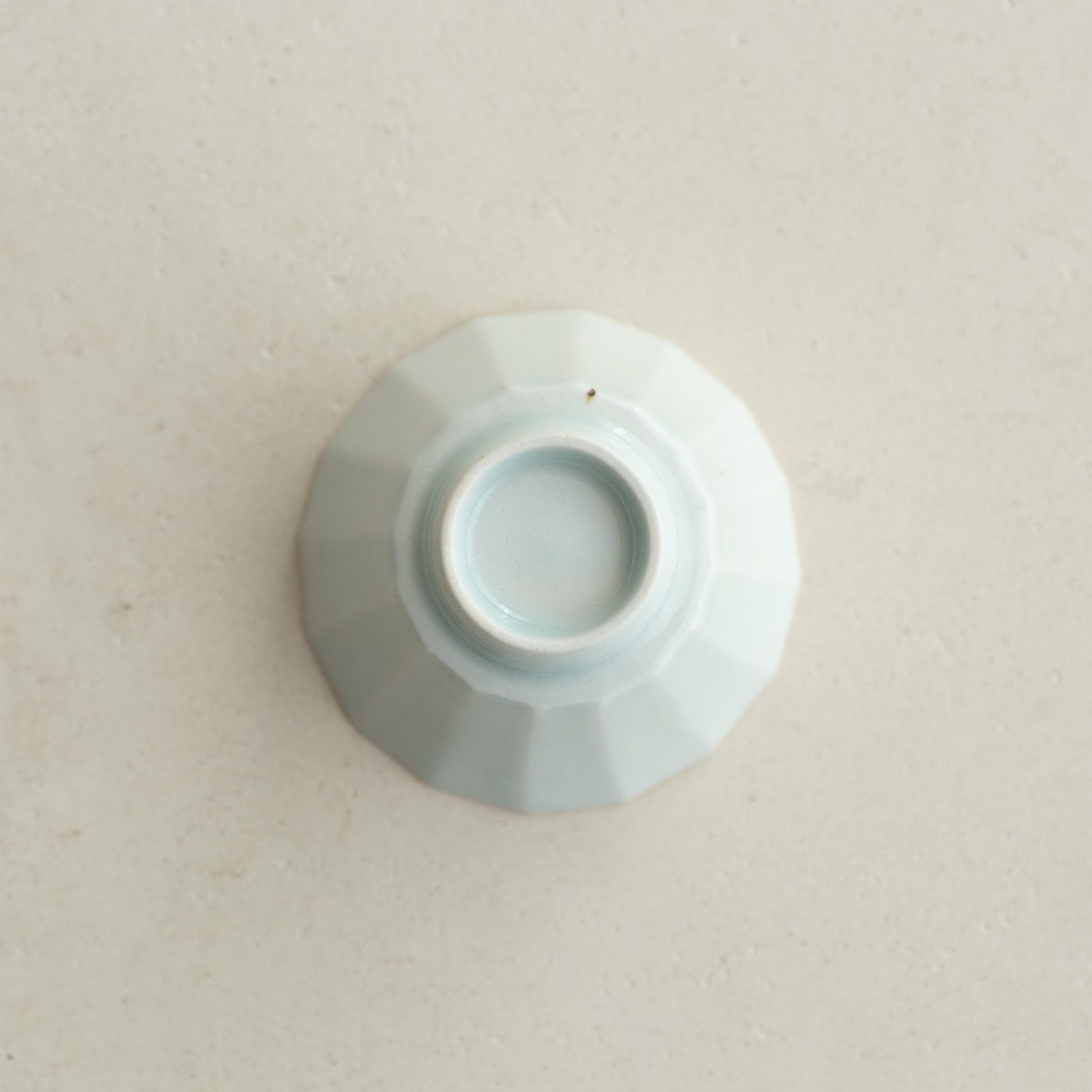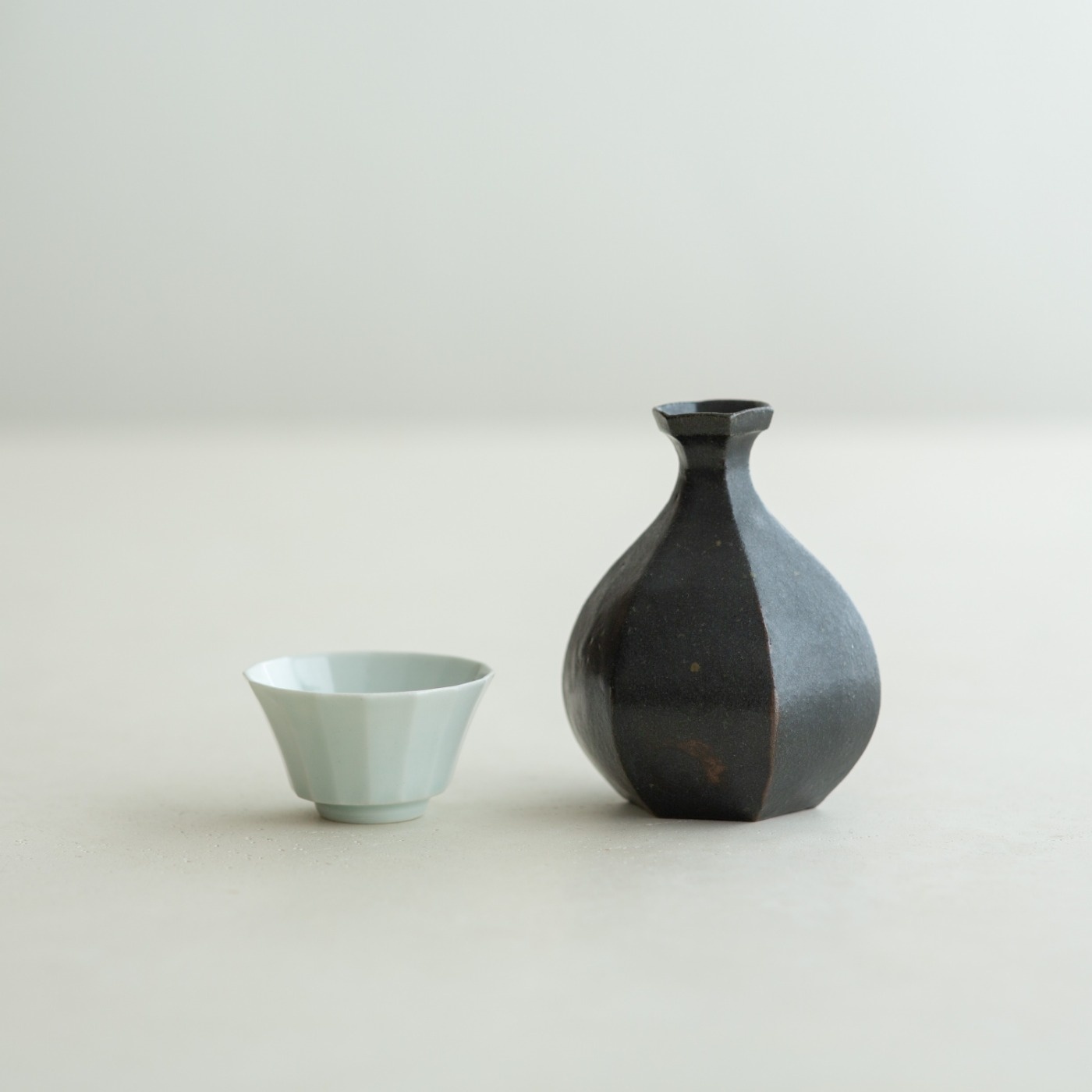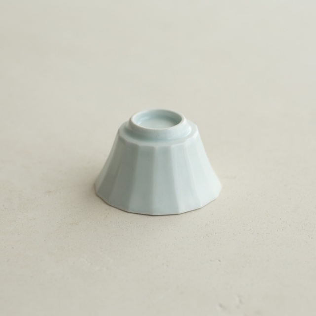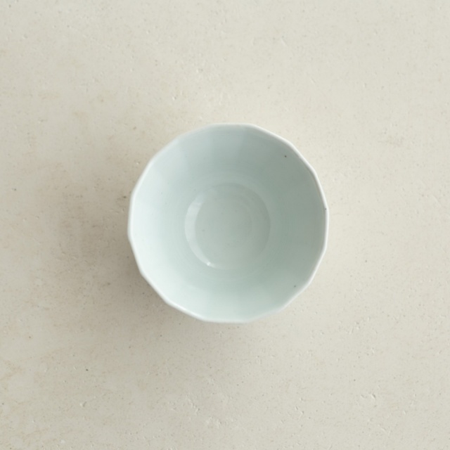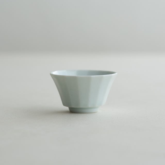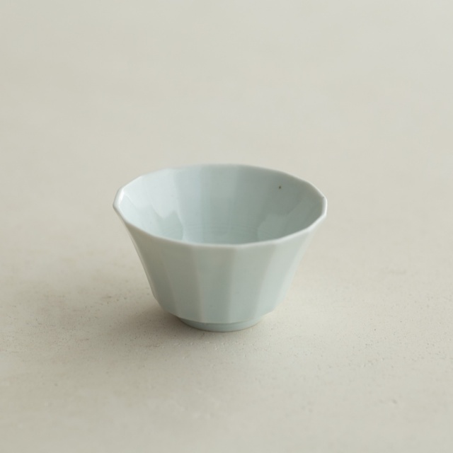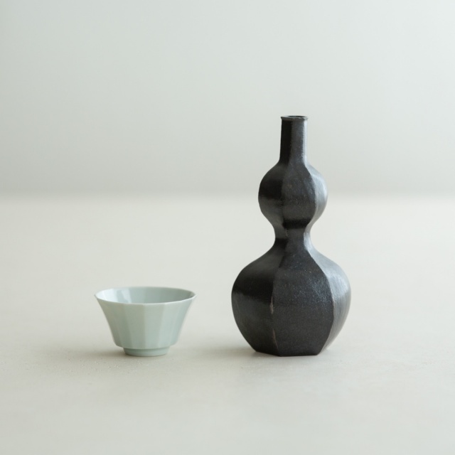 型打成形の後、面を削り出しています。古九谷の時代のつくり方を参考にしたそうです。釉の溜まったところはほんのり色付き、面取の凜としたラインとの響き合いがきれいです。