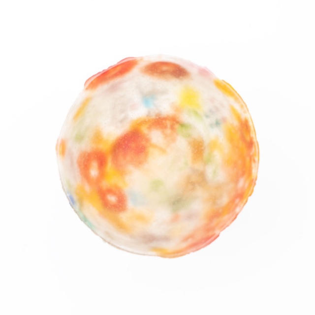 無色透明なガラスをベースにしていることが多いですが、今回の作品には不透明色、クリーム色のガラスを使っています。