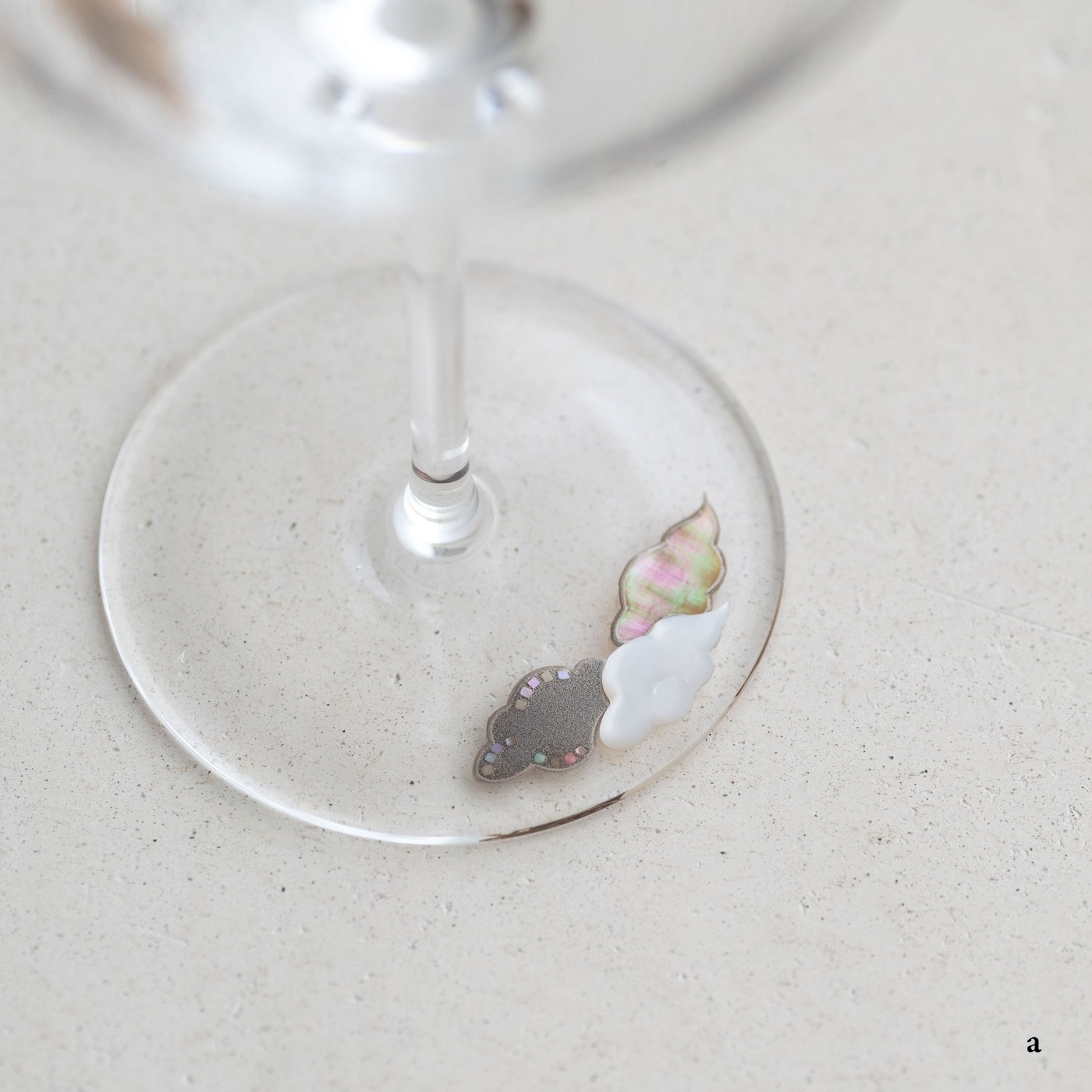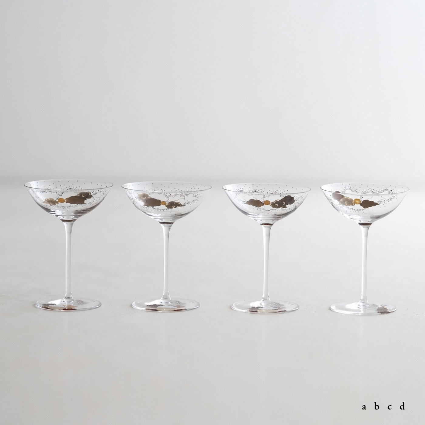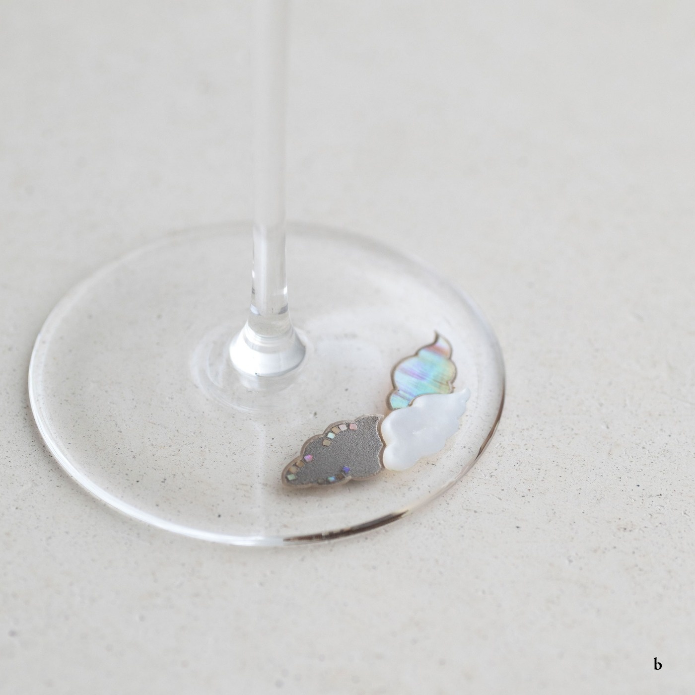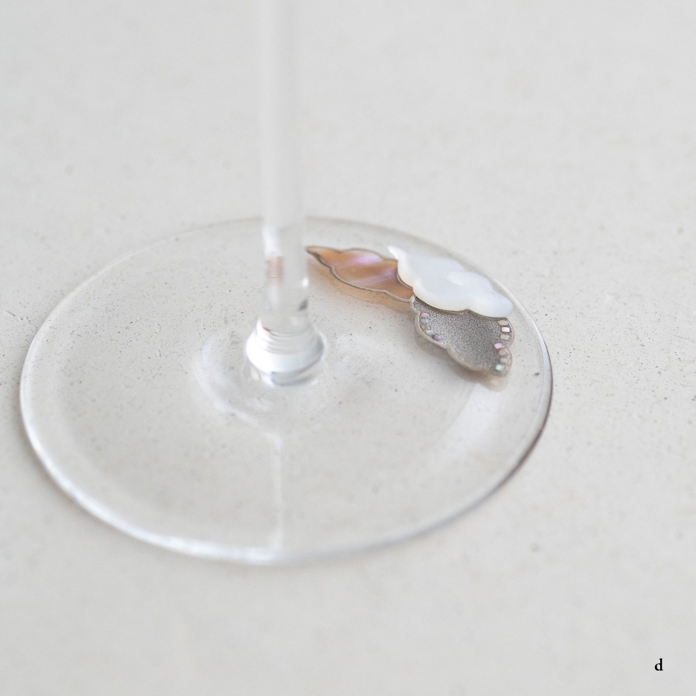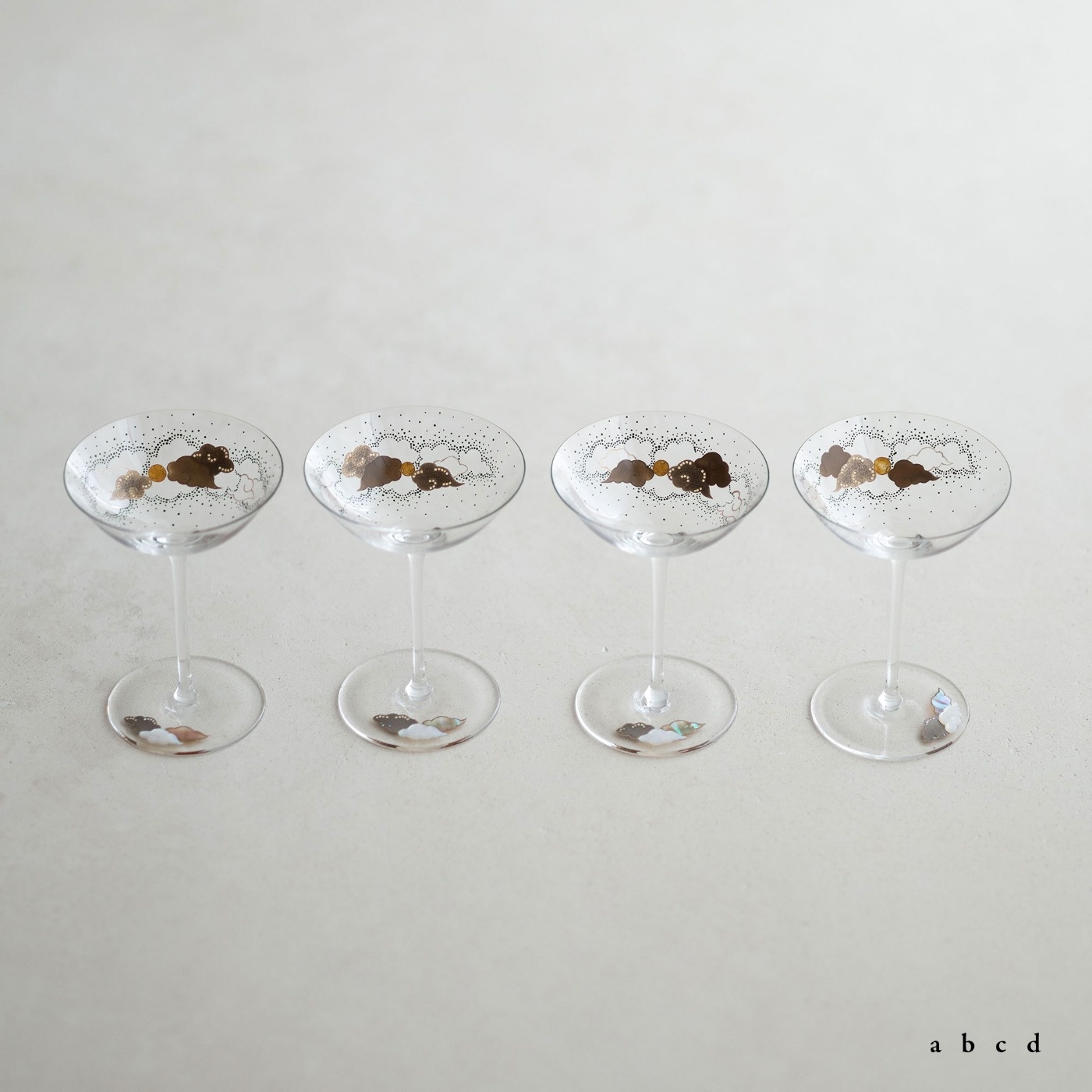 透明なお酒だけでなく、かすみ酒やハチミツのお酒ミードなどを注いでも、金色のお月さまや雲がぼんやりと霞んで朧月夜の景色に。