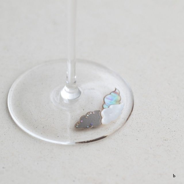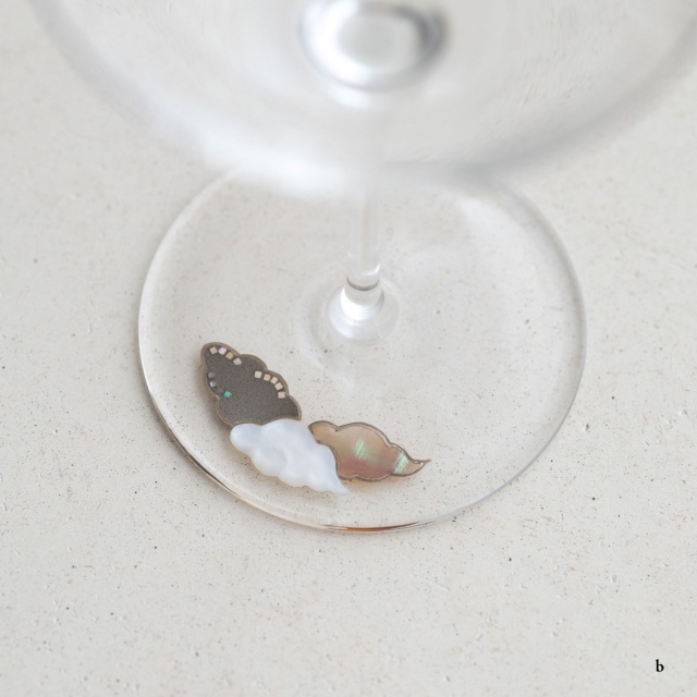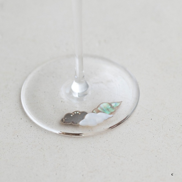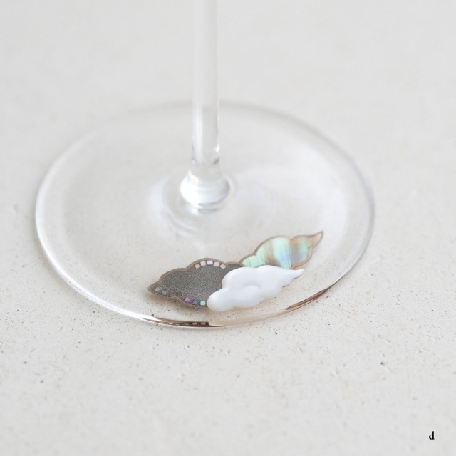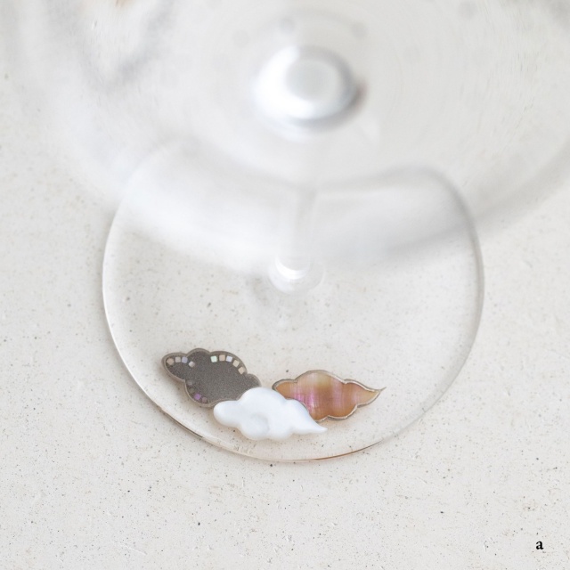 厚みのある雲は白蝶貝、小さい貝の粒と薄い雲はアワビの貝を使用。