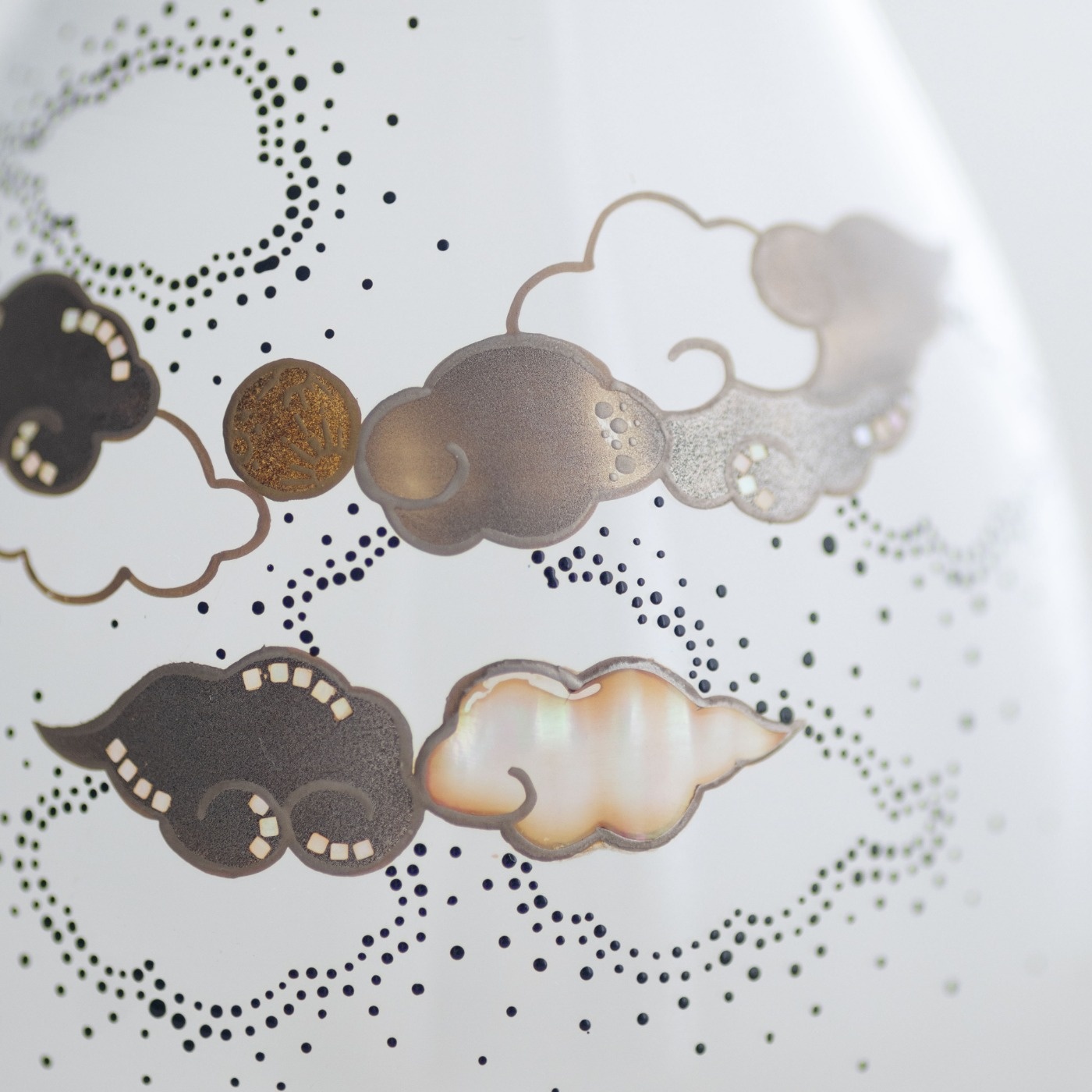 こんもりと厚い雲は白蝶貝で、光の変化を楽しめます。