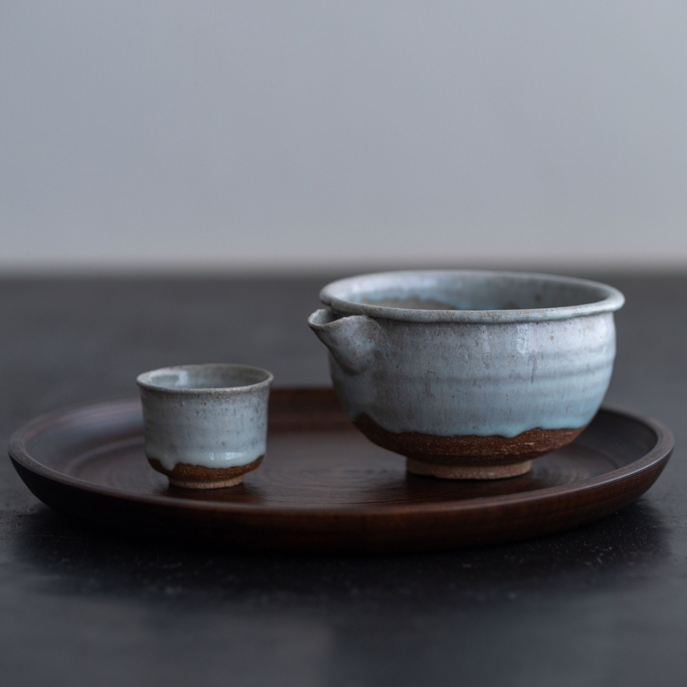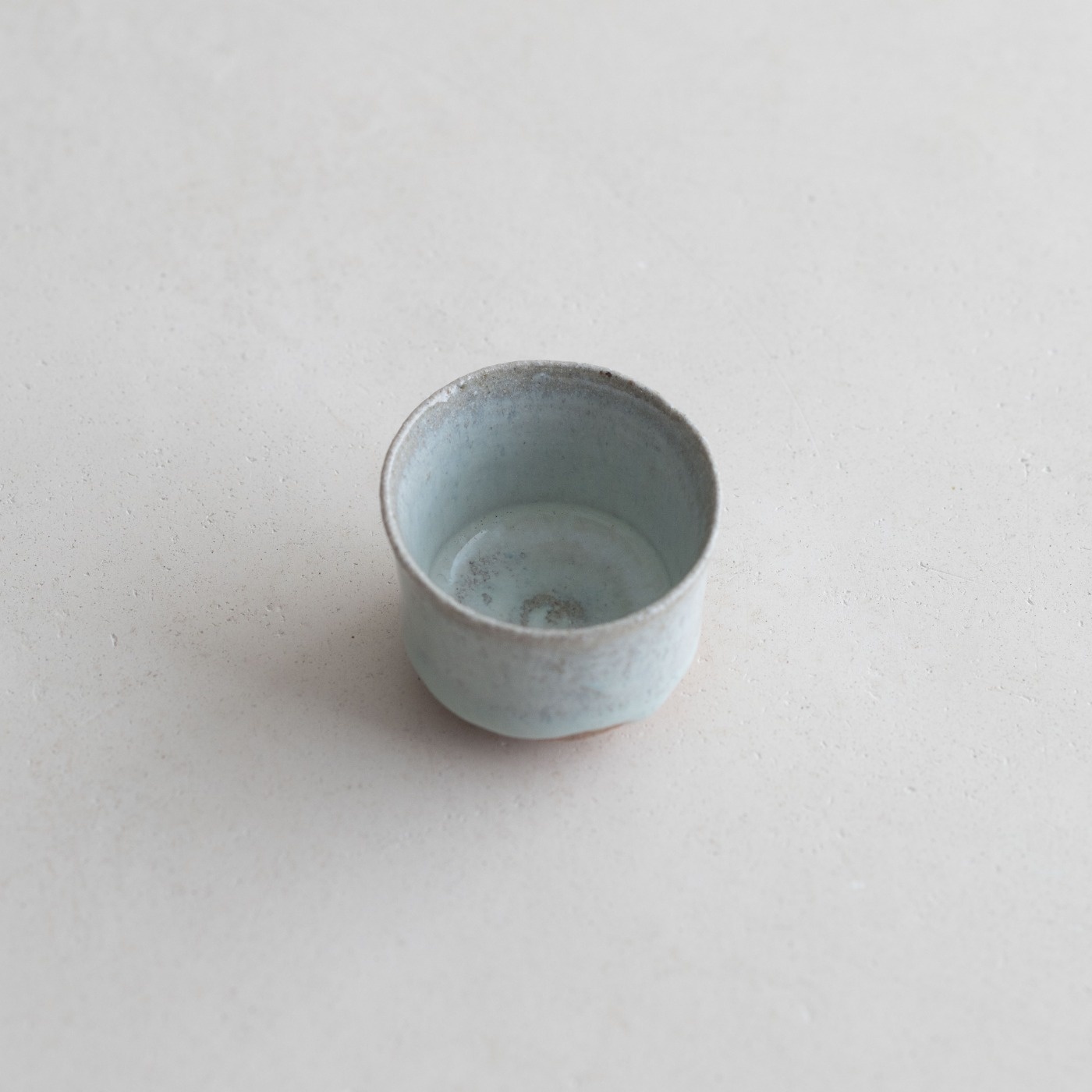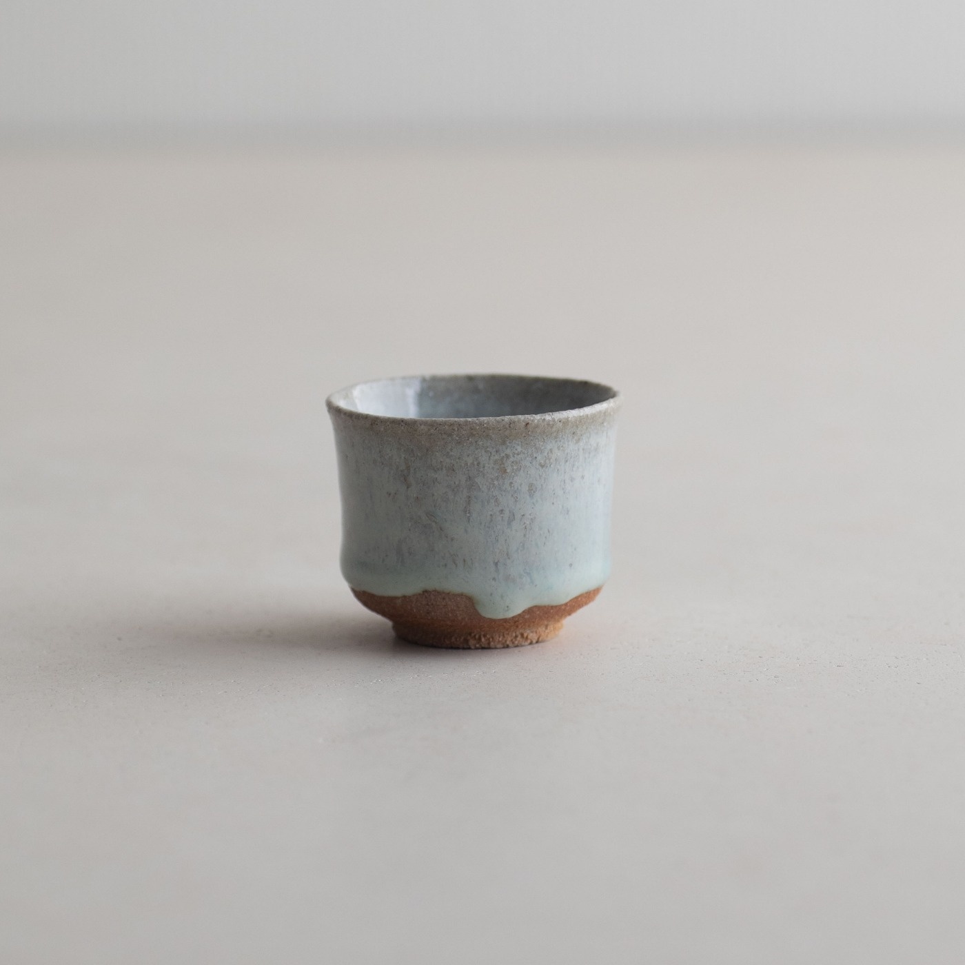 唐津の代表的な焼き物である斑唐津。矢野さんは憧れの古い物に学びながら、自分で土も釉薬もつくり続けています。藁灰を主成分にした釉薬の乳白した釉調に、ざっくりした粗い土味が魅力の斑唐津。お酒を注ぐと釉の濃淡の斑が引き立ち、使い続けるとお酒が貫入にも染みて、濃淡が育つそうです。土は北波多地区などで採取した吉野谷砂岩で、粒が大きく、精製するとざっくりとした土になり、釉薬の掛からない土見せも目を引きます。「自分は本当に唐津好きになりました。わからないことがたくさんあって、今でも少しずつ調合を変えてみたりしています」と矢野さん。