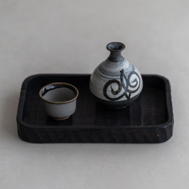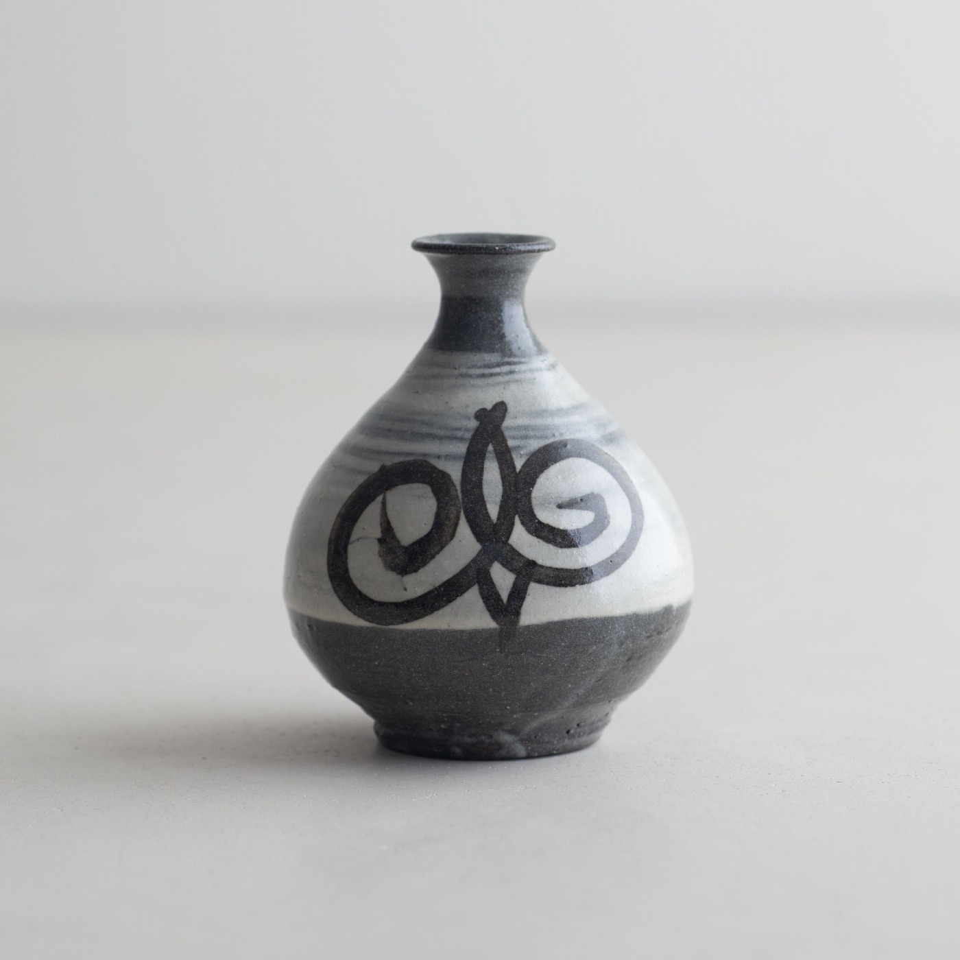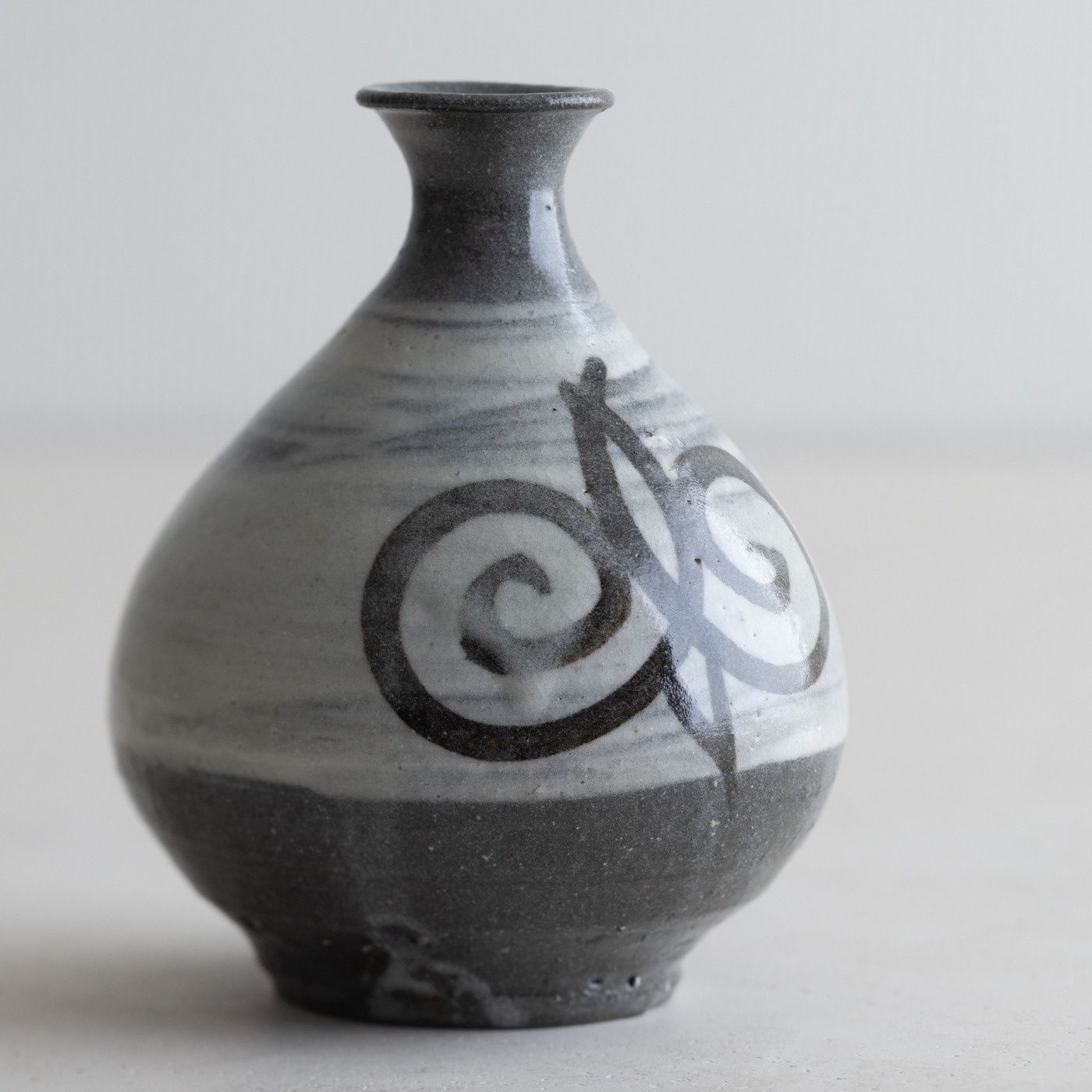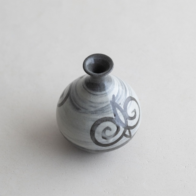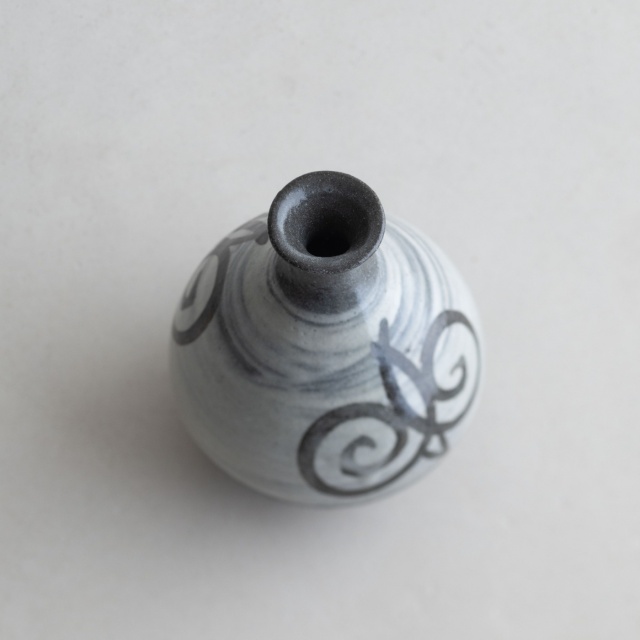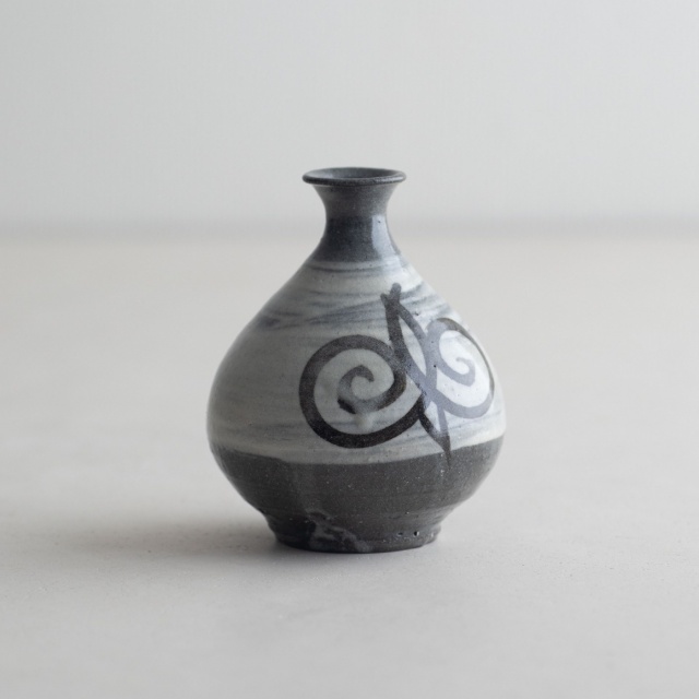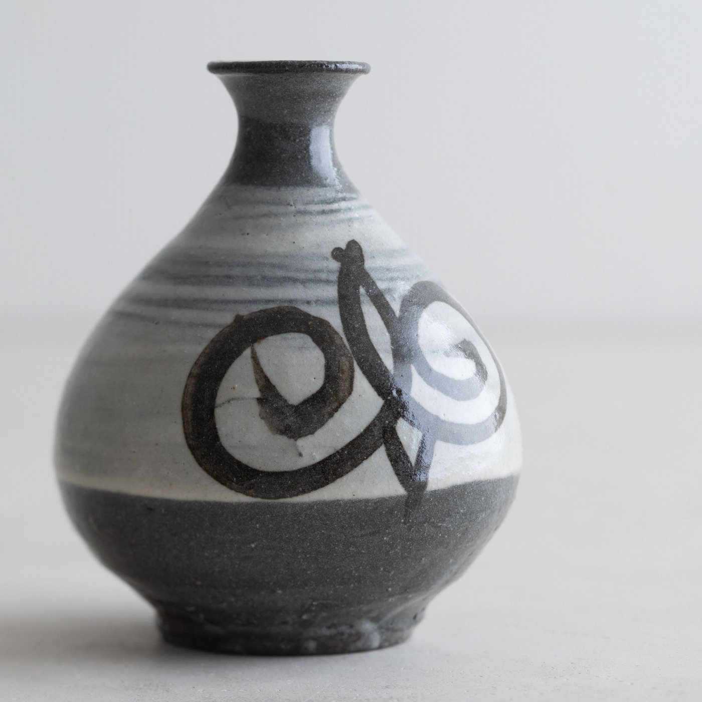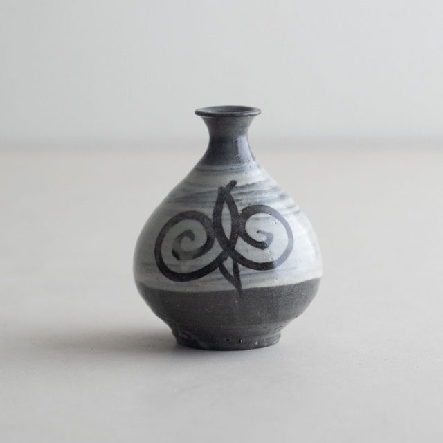 「30代の初めの頃、韓国に半年間滞在していた時に、刷毛目の仕事も学びました」と矢野さん。鶏龍山は李朝時代のものに人気があってよく知られているもの。鉄分が多めの黒っぽい土に、白い化粧土で刷毛目を施した、そのコントラストが魅力です。矢野さんの筆をグッと動かした刷毛目の上に描かれた鉄絵も印象的です。