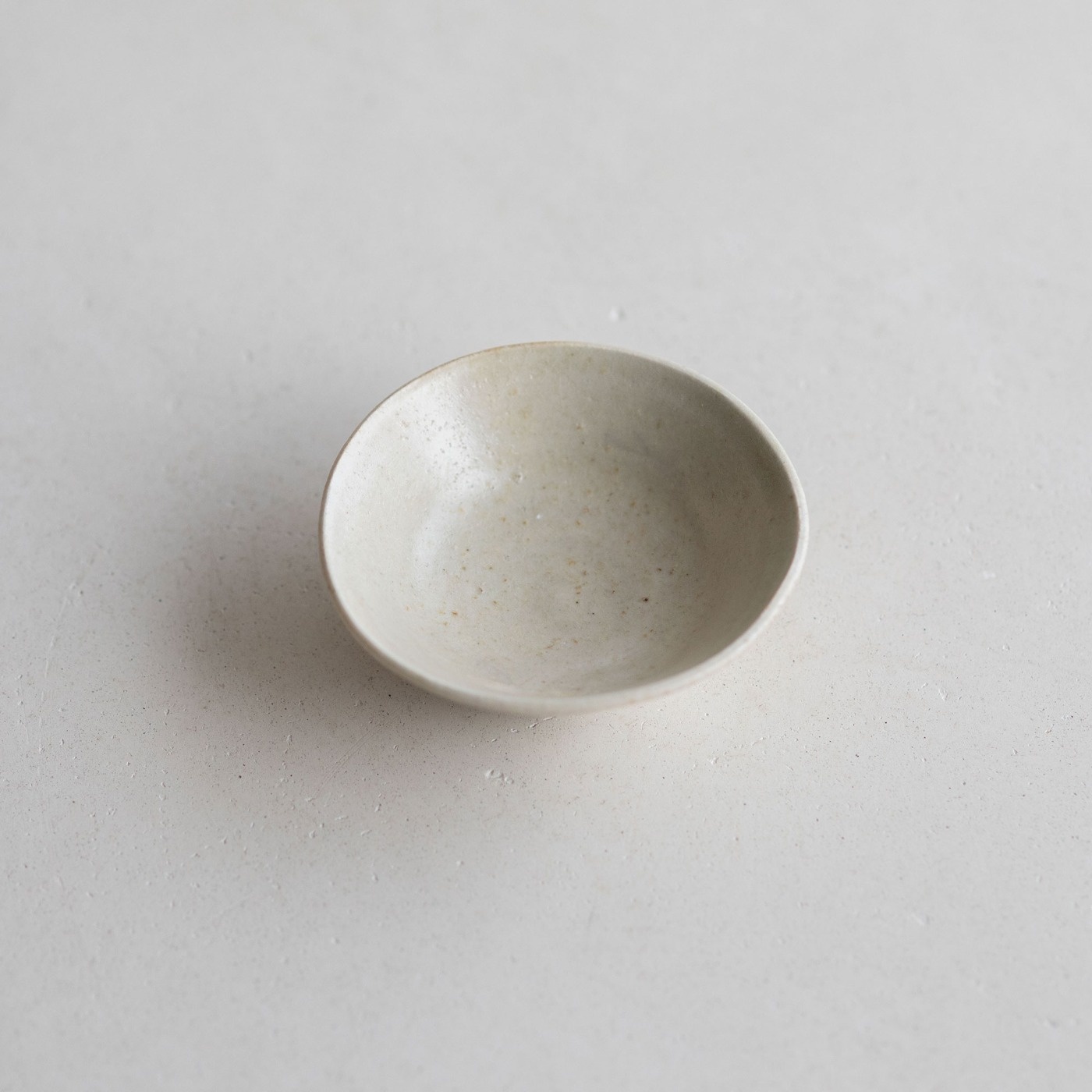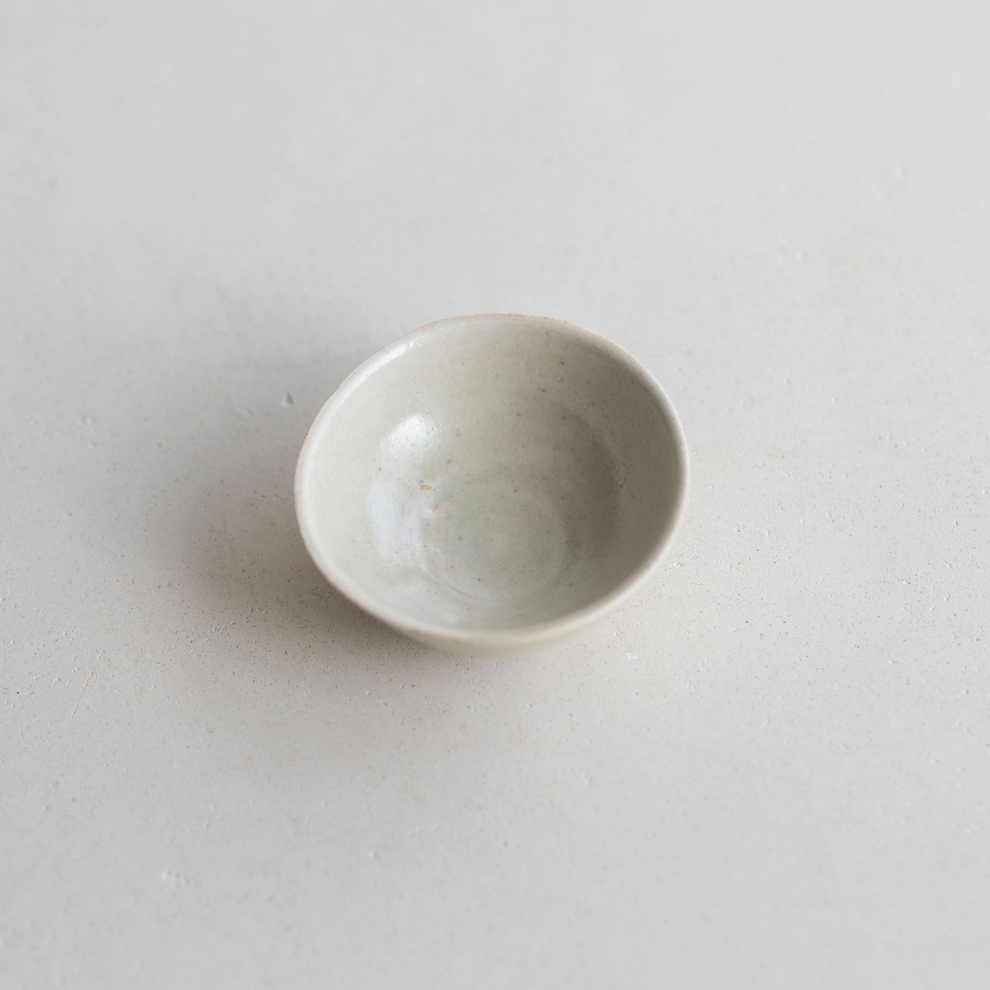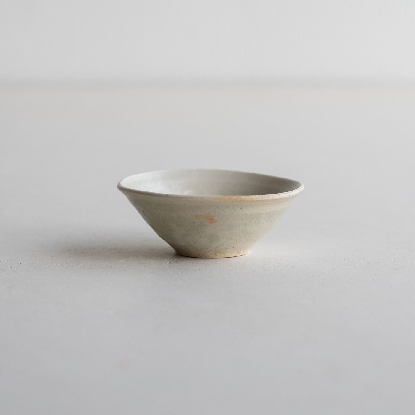 山本亮平さんの染付と赤絵付がうっすら見える平坏を2個重ねたセットです。平坏は全体的にマットな枯れ色の雰囲気で、赤絵の橙色がかったところがきれいに映えます。2個を重ねて収める酒器袋は、インドのカンタ刺繍の木綿。内側の布にもインドの型染めの木綿を使用していて、緒は若竹色の絹。酒器袋に収めるのも取り出すのもたのしくなります。酒器袋はtextile n+R の制作です。