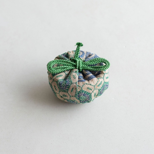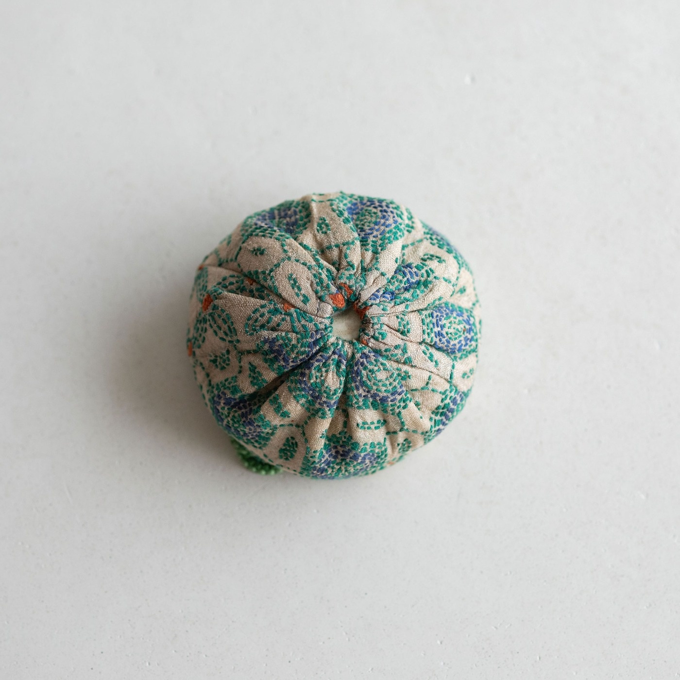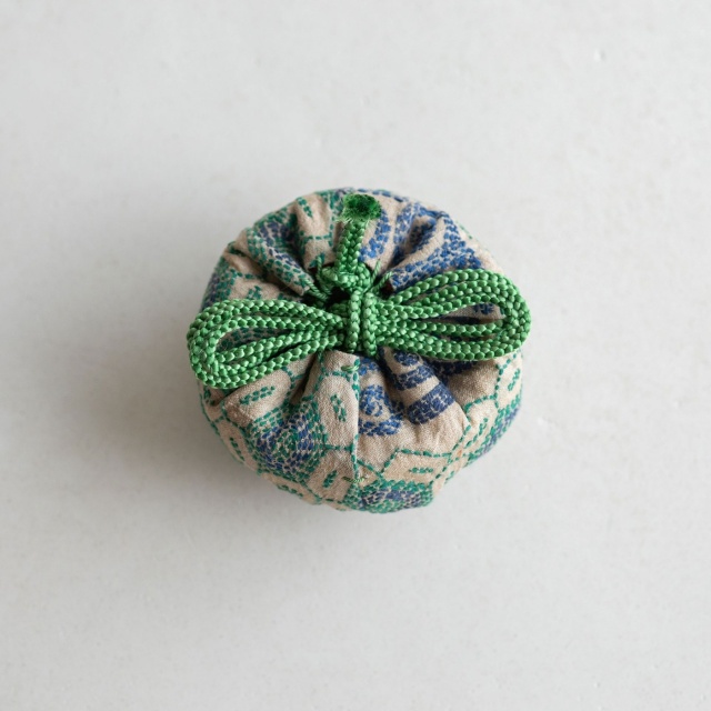 | 酒器袋 | 表布:インド 木綿 カンタ刺繍 裏布:インド 木綿 型染め 緒 :絹 手組 若竹色 textile n+R http://textilenplusr.net/ |