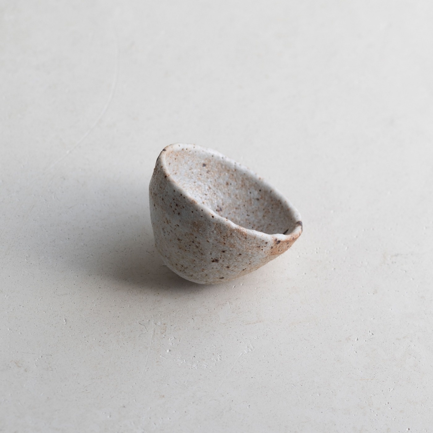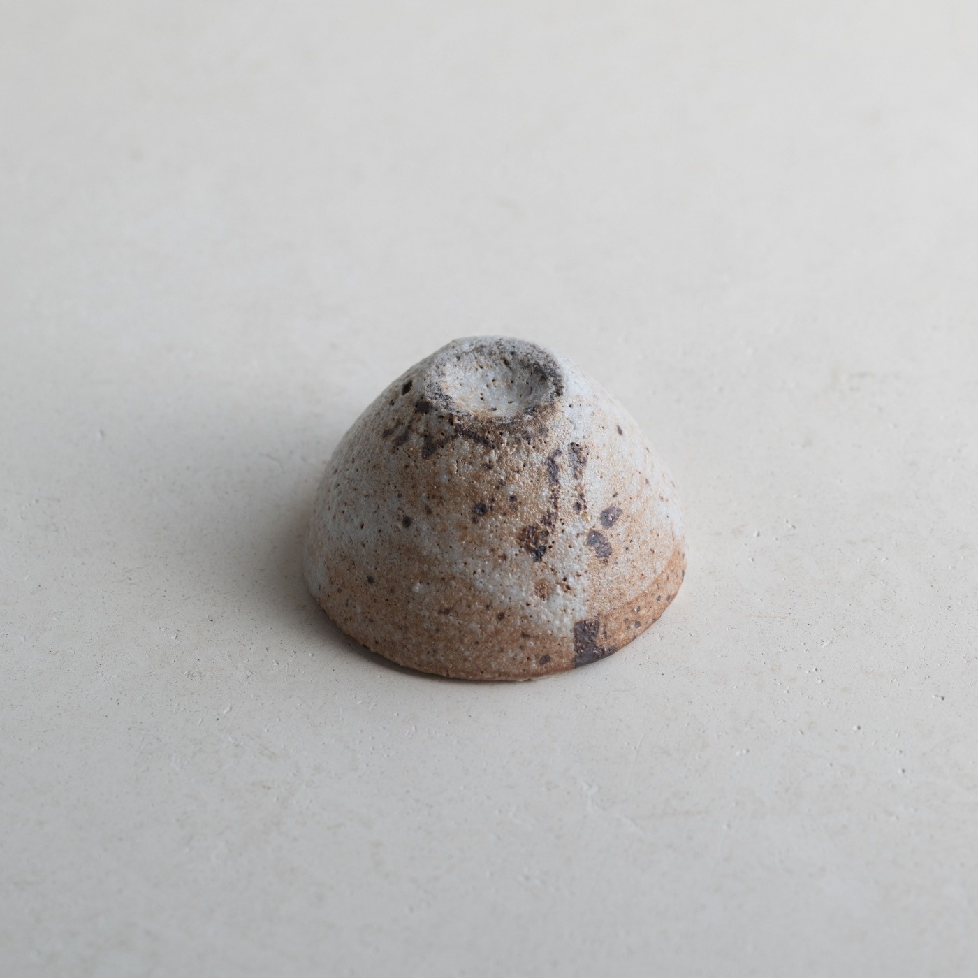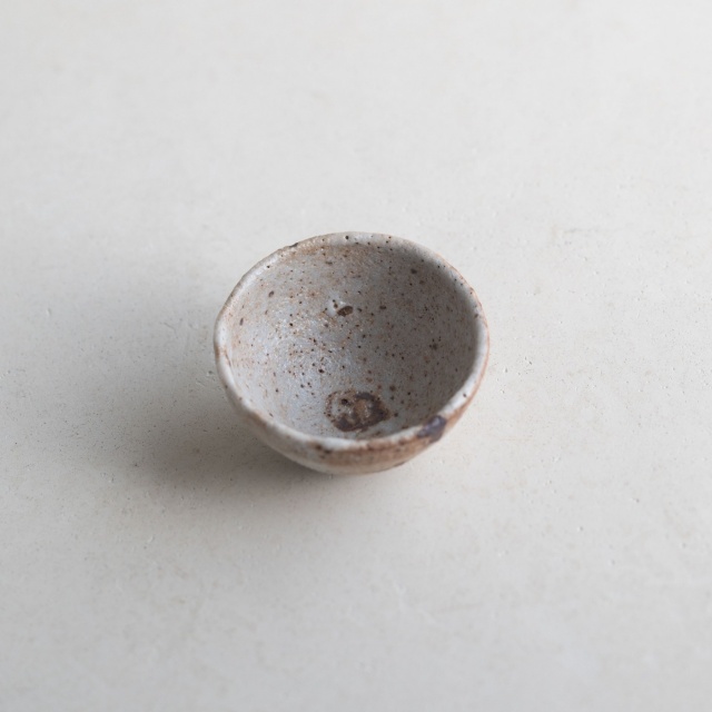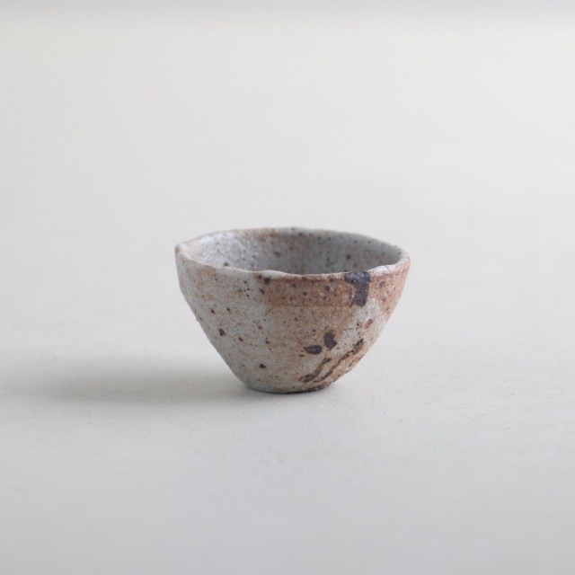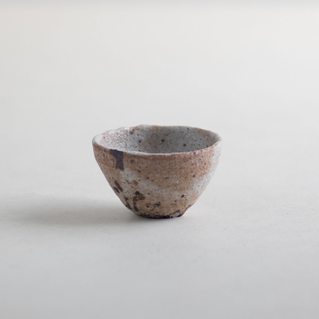 土岐の赤土を使ったぐい呑みです。鉄絵の山菜図と長石釉が景色をつくっています。使用によって育ちそうなので、お酒を注いで愛でてください。