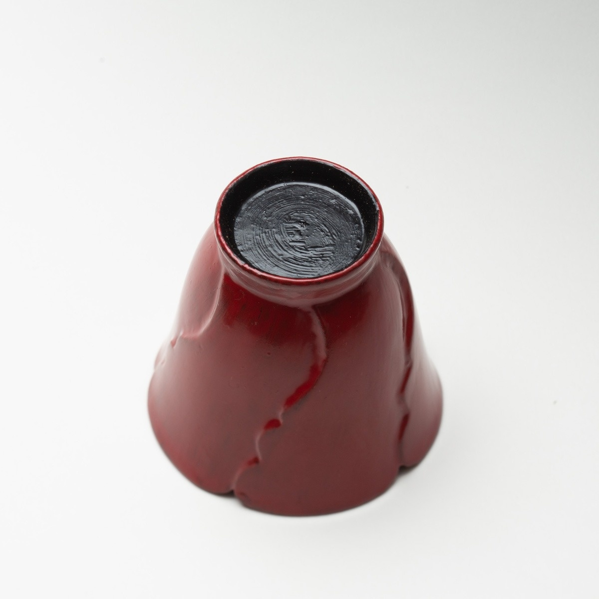 ほっそりとした新しい意匠の朱輪花杯。蕾が開き始めたような趣きで、花びらの表情に動きが感じられます。