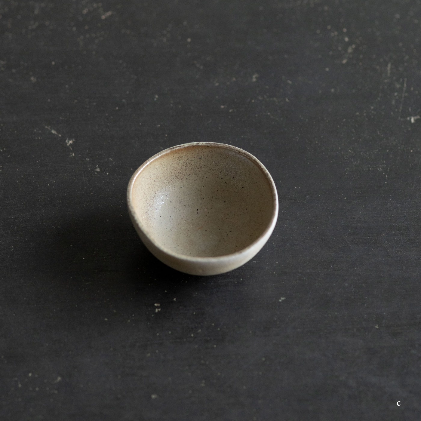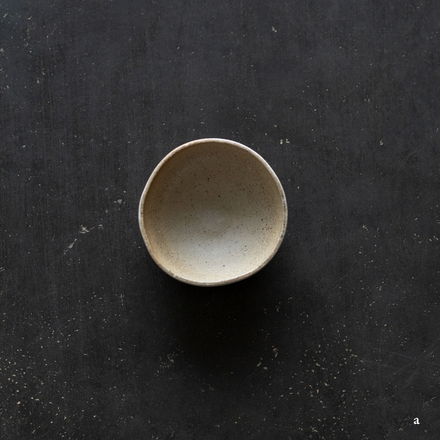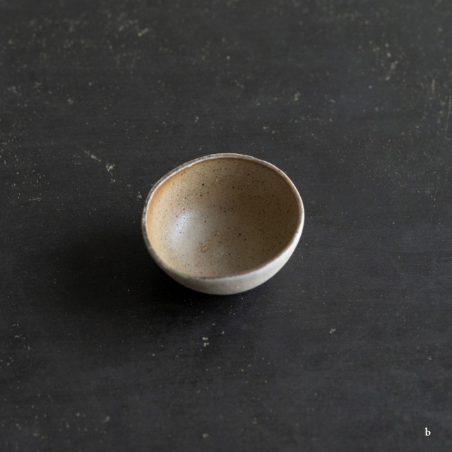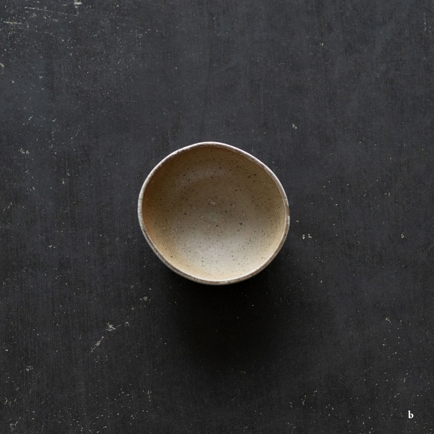 掌に心地よくおさまる器の丸みは、独自の手法”くぼみ”(砂いこみ)から生まれる形です。ろくろや手びねりで成形したものではなく、海岸で拾った丸い石などを使って、砂状のところにくぼみをつくり、そのくぼみに泥を流し込んで、くぼみを器に写すという手法で成形しています。一つのくぼみからつくるものは一つだけです。