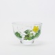 のびのびと描かれたキュウリは、大きく咲いた花と実が有線七宝、濃淡の葉はエナメル絵付けです。黄色の花は、釉薬の盛り方で薄くてやわらかい花びらを表現しています。キュウリの実は、角度によって細かな銀線の粒がさりげなくきらめきます。